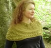 Whilst our Bronze Age ancestors didn’t knit, they did have a keen eye for design and detail. This cozy modern capelet is inspired by the early Bronze Age archaeological masterpiece known as the Mold Cape, a beaten gold ornament dated to c1900-1600 BC richly decorated with textures and shapes thought to be influenced by beadwork and textile drapery.