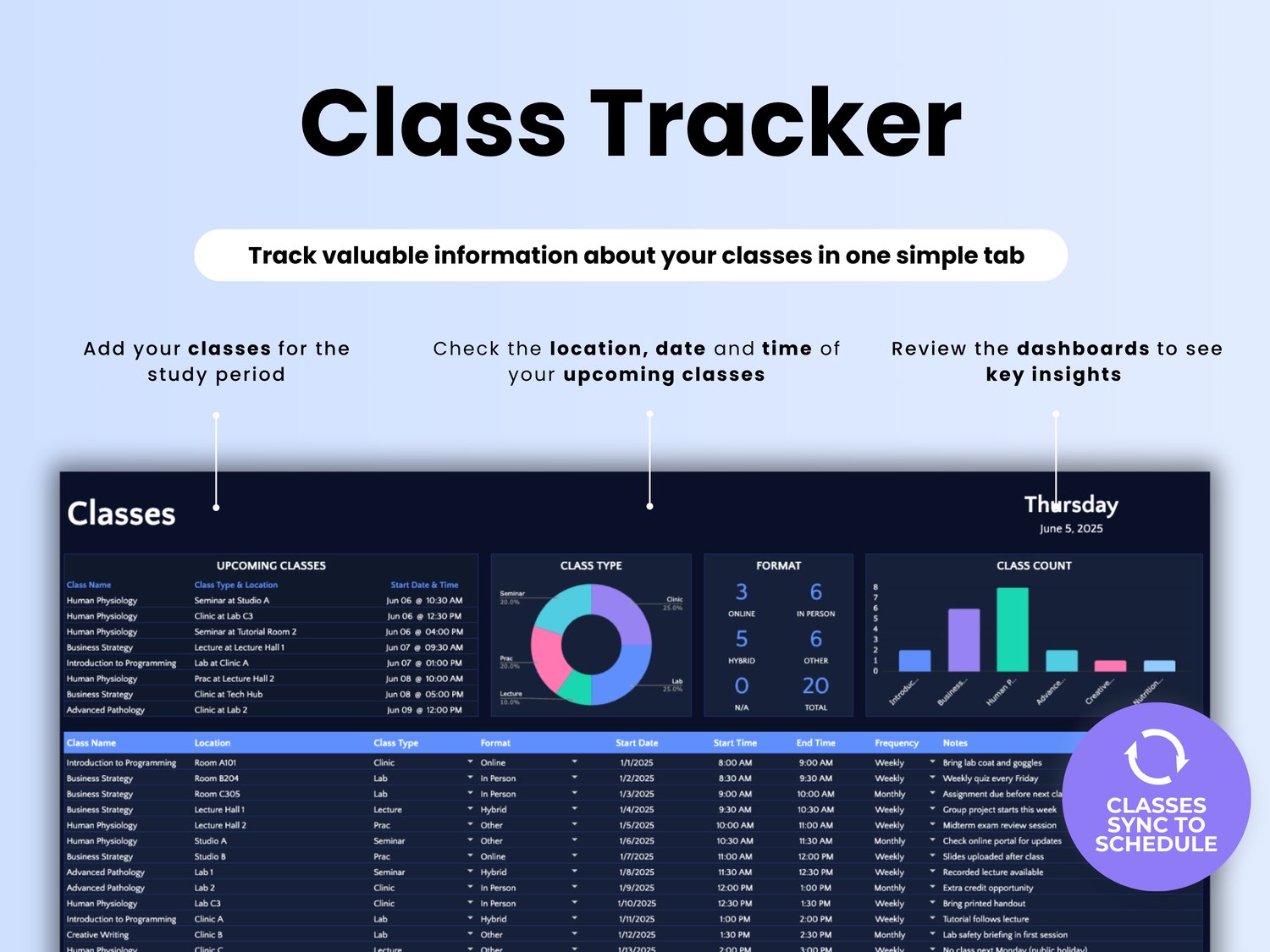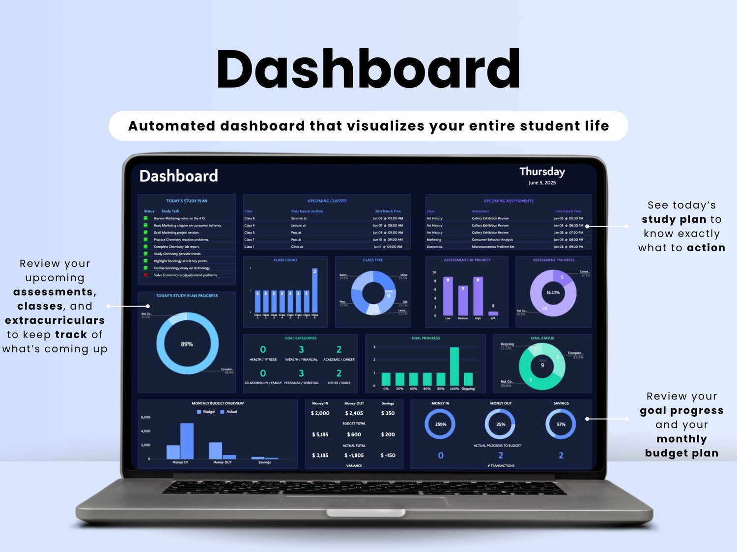 📊 Dashboard: Get a clear overview of everything related to upcoming classes, assessments and so much more.