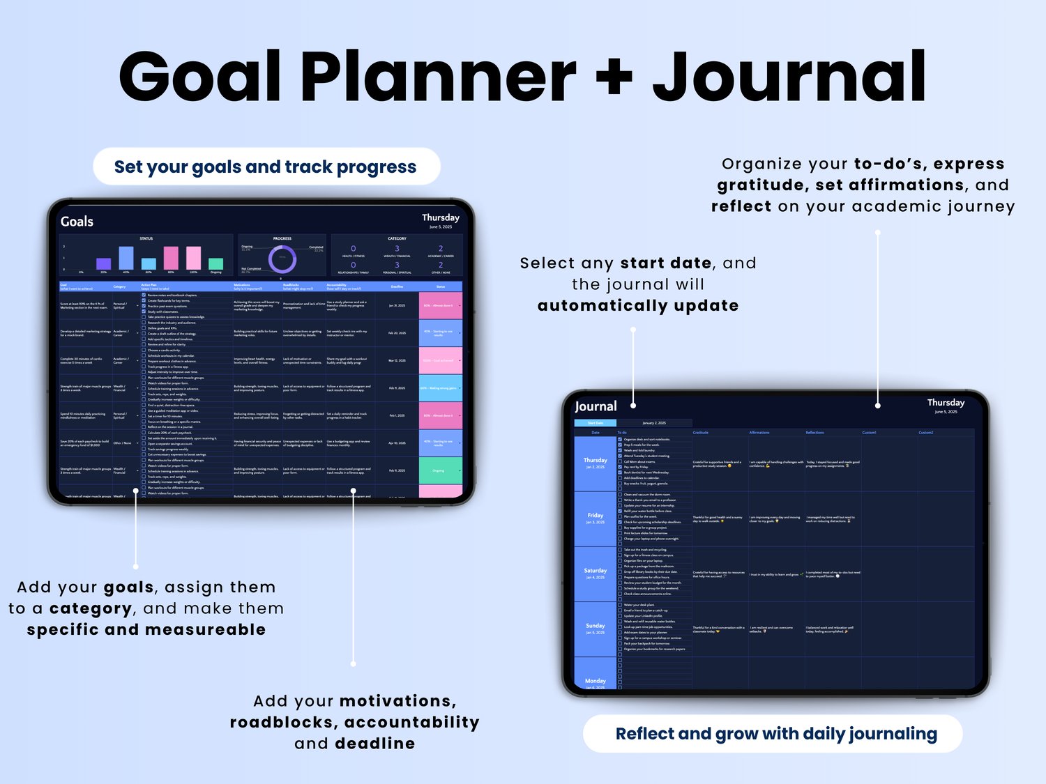 🎯 Goals and Journal: Set goals, track your progress, and reflect on your journey.