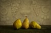 - Notes from the Artist: I am often drawn to objects of three. While visiting an estate in New Mexico, I picked up three pears from a nearby tree and found a neglected piece of furniture to use with my subjects. In Christianity, the pear tree symbolizes Christ’s love for mankind.
