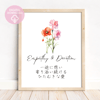 Printable August Birth Month Flowers Art Print, Japanese Quote Room Decor