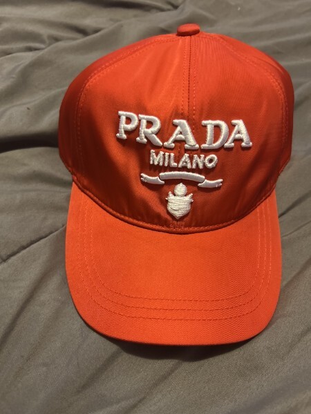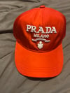 Authentic Prada (chatgpt://generic-entity?number=0) Milano hat in a bold red and white colorway. Crafted from Prada’s signature lightweight nylon material, giving it that sleek designer-sport aesthetic the brand is known for.