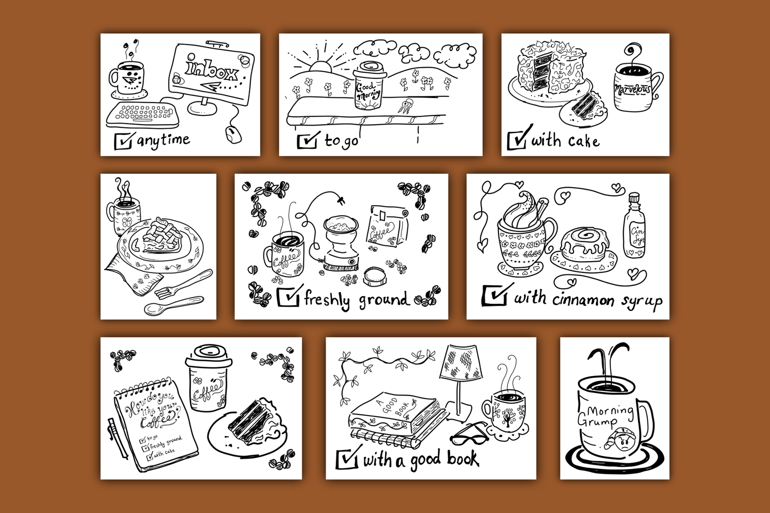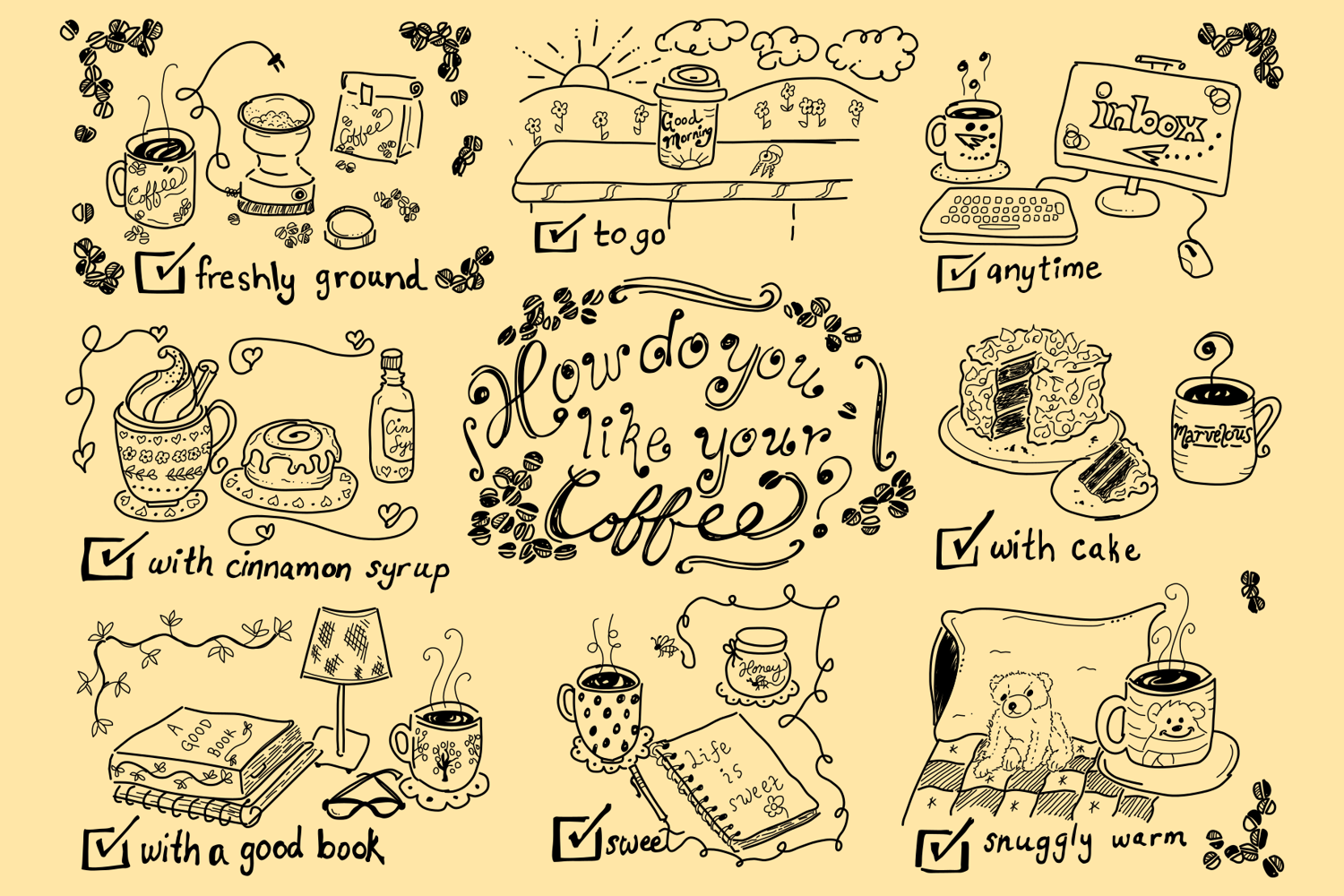 Whether you like your coffee sweet and creamy or strong and earthy, this Coffee Break Illustrations package is for you!