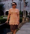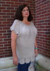 This is a A-silhouette tunic. It is designed to fit the bust area with zero ease but it flares at the bottom. The work is done with seamless construction from the bottom upwards.