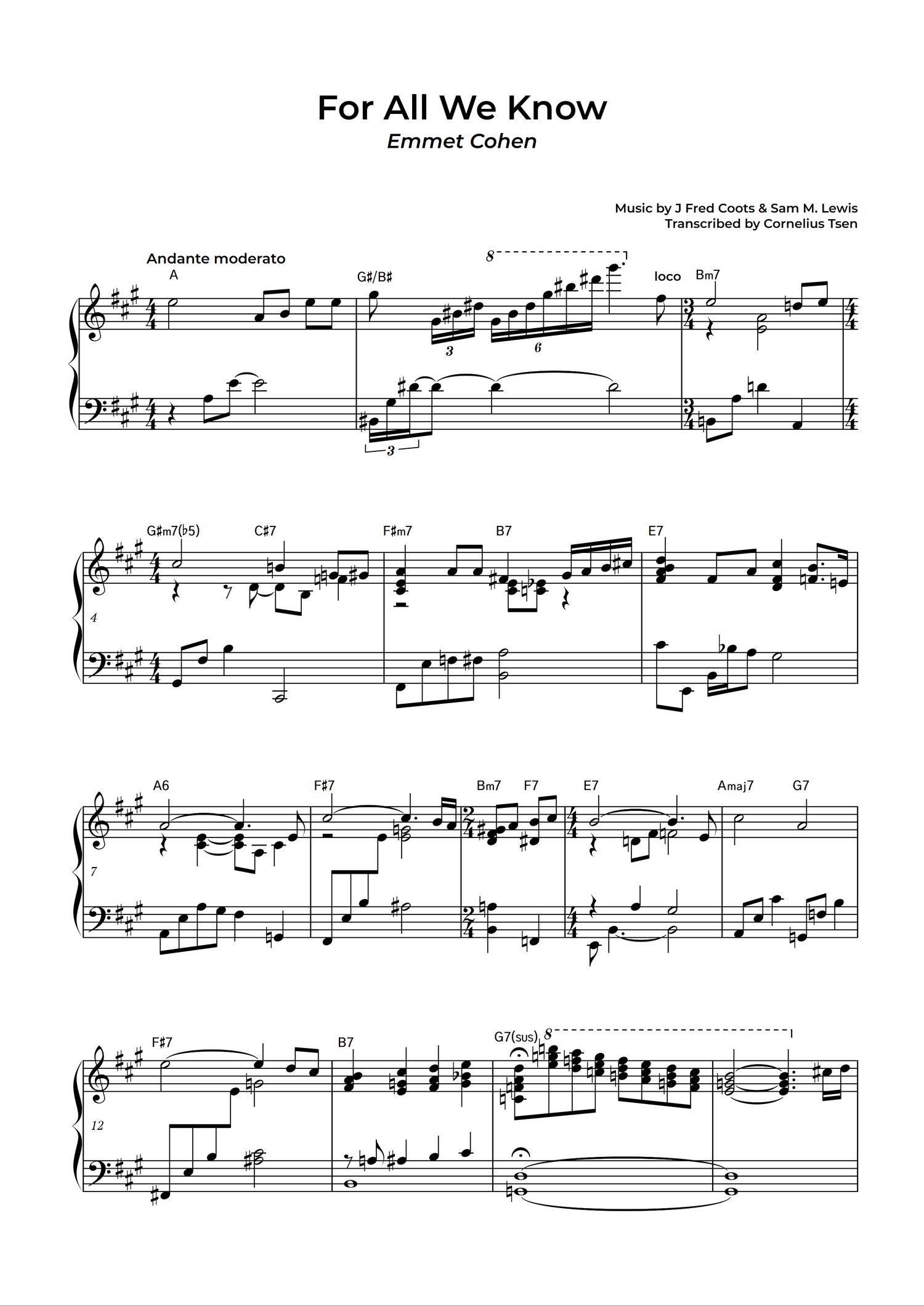 For All We Know by Emmet Cohen - jazz piano sheet music PDF
