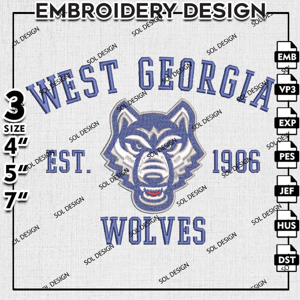 NCAA West Georgia Wolves Est 1906 Football Team Logo Embroidery Designs, NCAA West Georgia Wolves Machine Embroidery Files, NCAA Logo embroidery designs, Ncaa West Georgia Logo, Digital Download