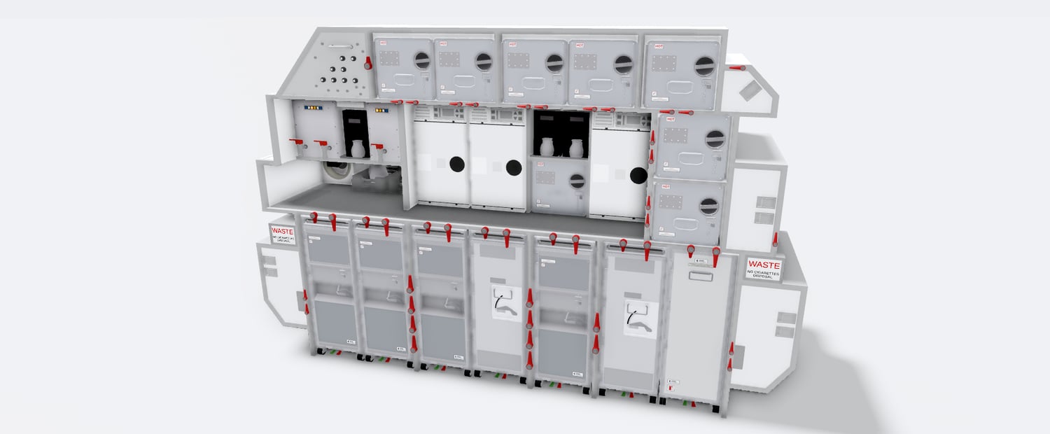 This detailed, realistic aircraft galley model replicates the layout and functionality of in-flight kitchen spaces. Fully customizable, it includes storage units, equipment, and compartments, perfect for any airline or aircraft.