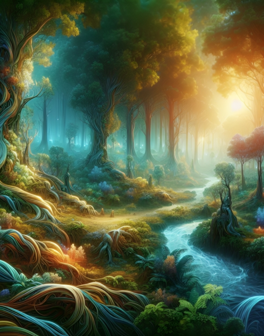 Magical Forest Painting, River Landscape, Fantasy Painting, Sunrise, Moonlight, Cloud, Lake Landscape.