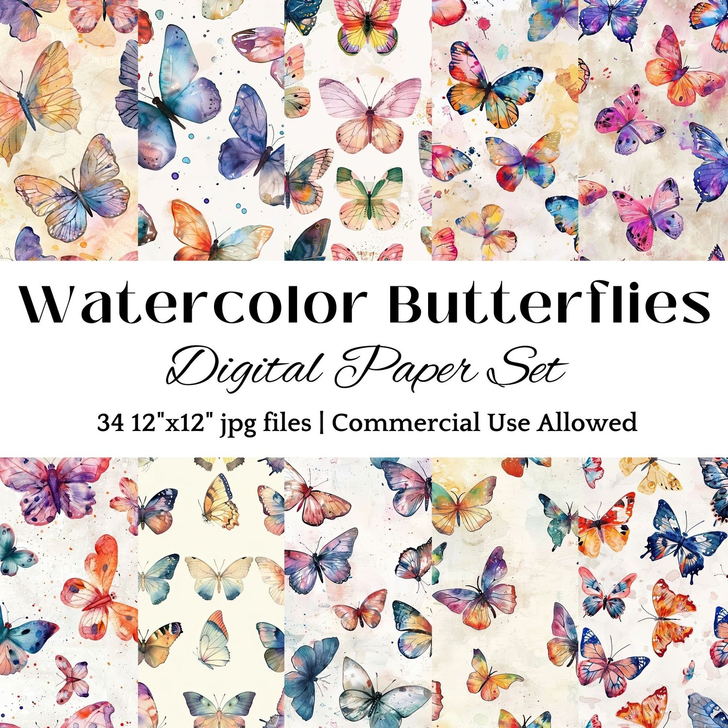 Brighten up your creative projects and make a statement with our Watercolor Butterfly Digital Paper Set!