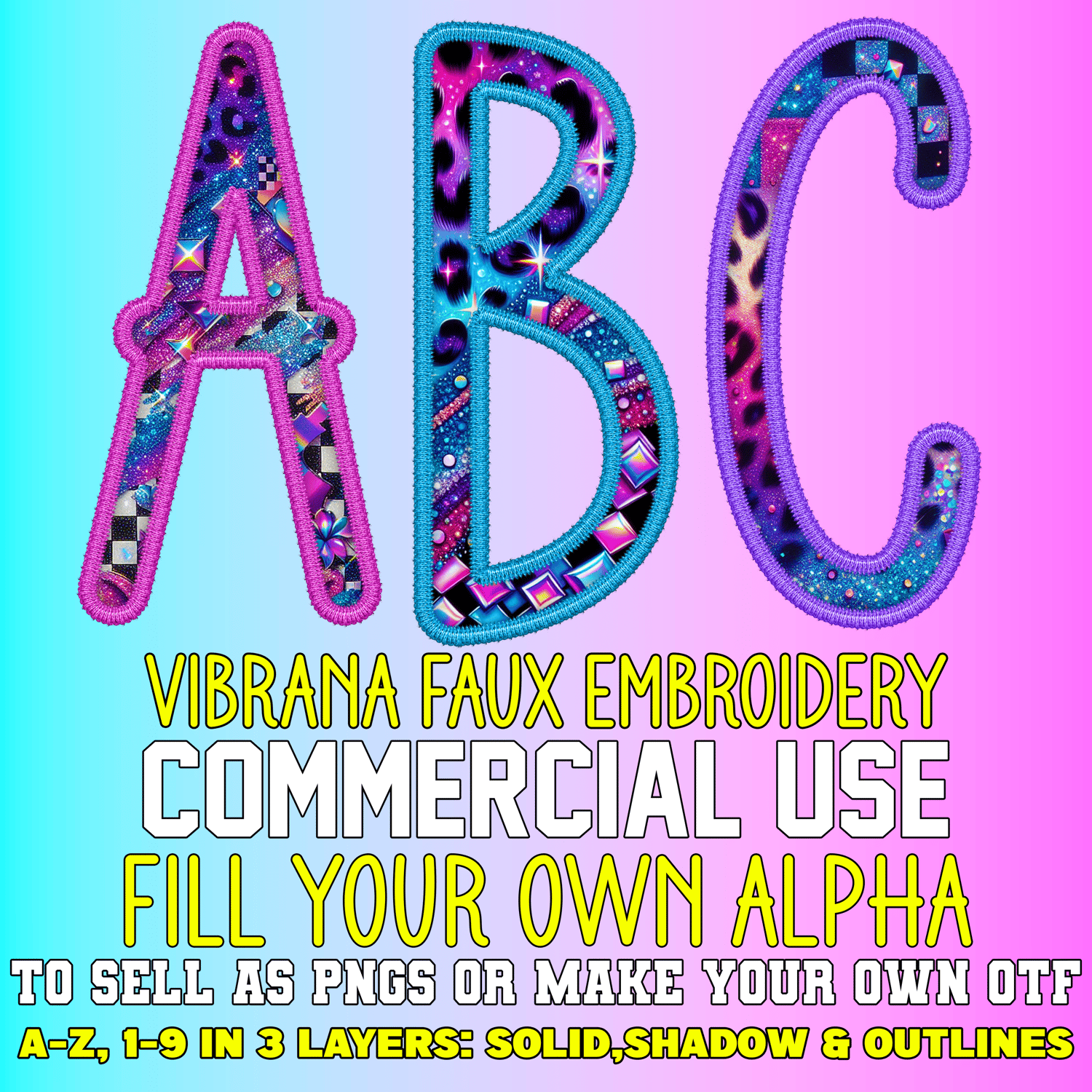 DIY Vibrana Font Faux Embroidery Alphabet, Commercial Use Create + Sell Alphabets