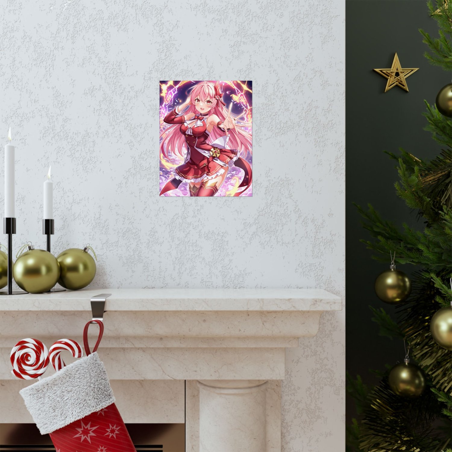 With my flowing pink hair, stylish red-and-white outfit, and a pose full of charm, I’ll make your wall the center of attention. This 8" x 10" vertical poster is perfect for anime fans who want a dash of magic in their everyday life. Matte finish, full-body glory, and high-resolution – just for you!”