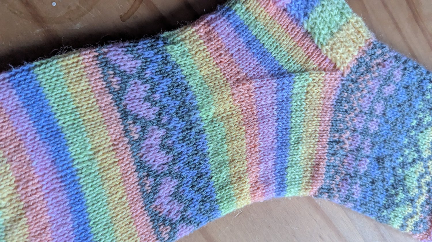 Sock number two, yes I am on a run, just another ten to come up with. This months uses yarn that I have had for ages and inspiration just didn’t strike, so with a nod to Valentines here are the February socks with a lovely bit of colour work