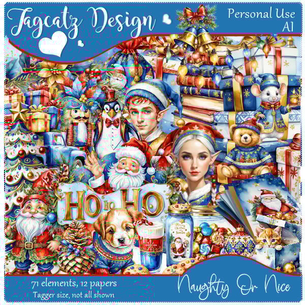 Naughty Or Nice kit with 71 elements and 12 matching papers. AI product. Tagger size. Not all shown. Personal use only.