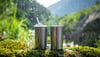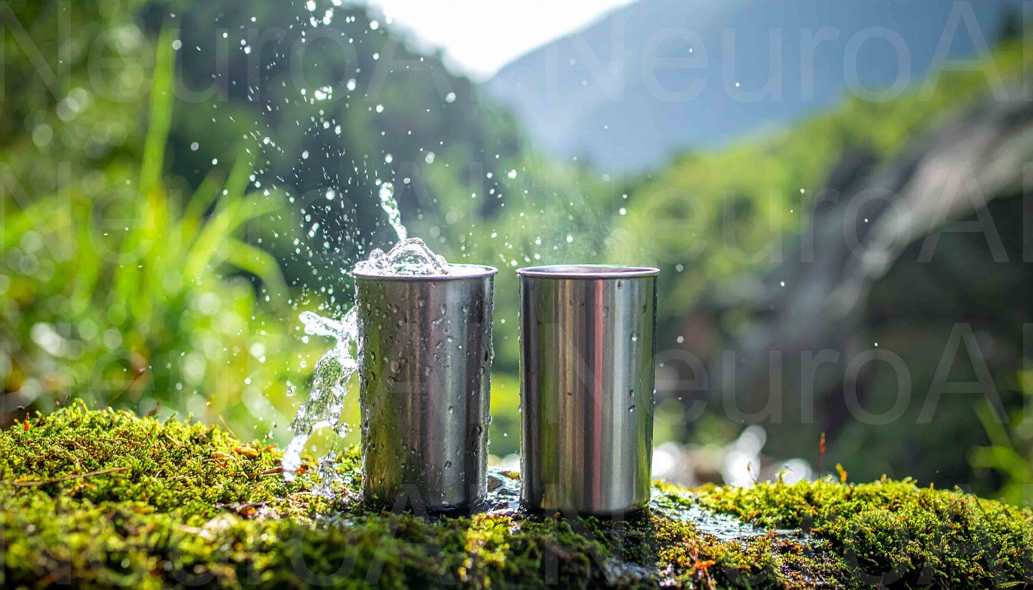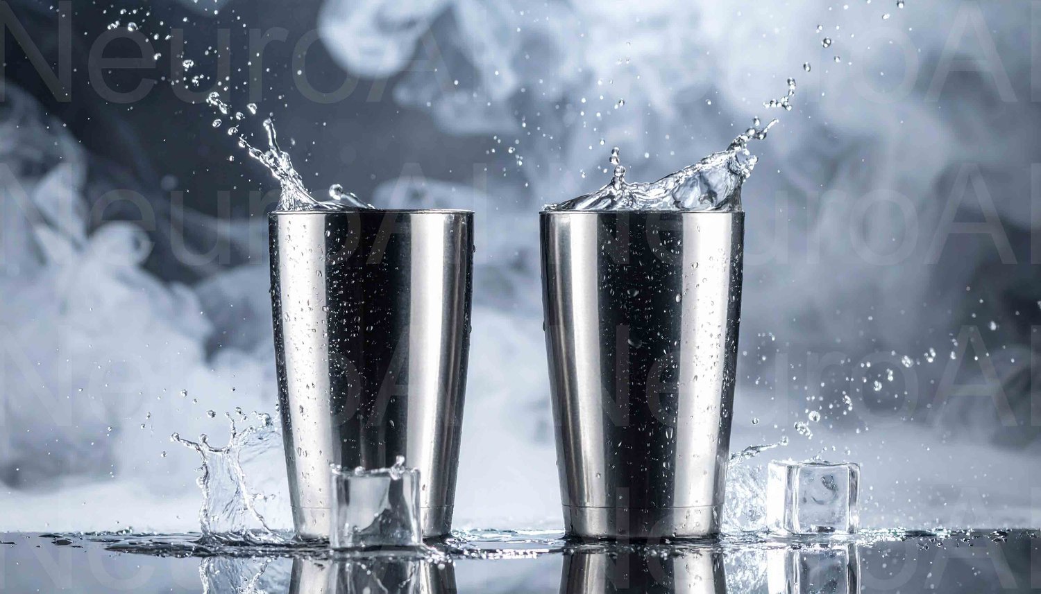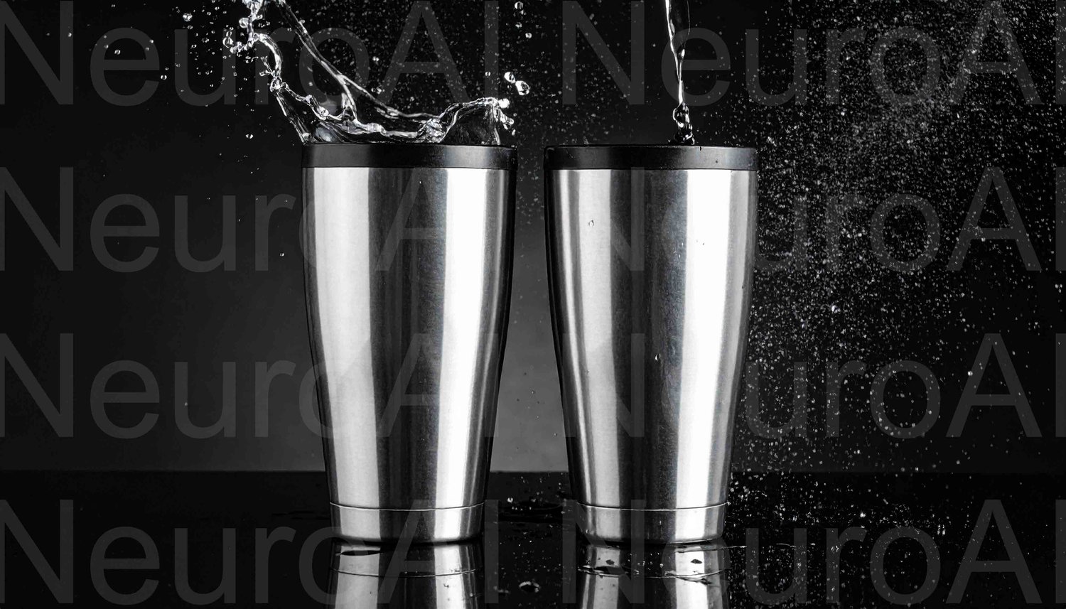 Stainless steel tumblers being filled in dark scene