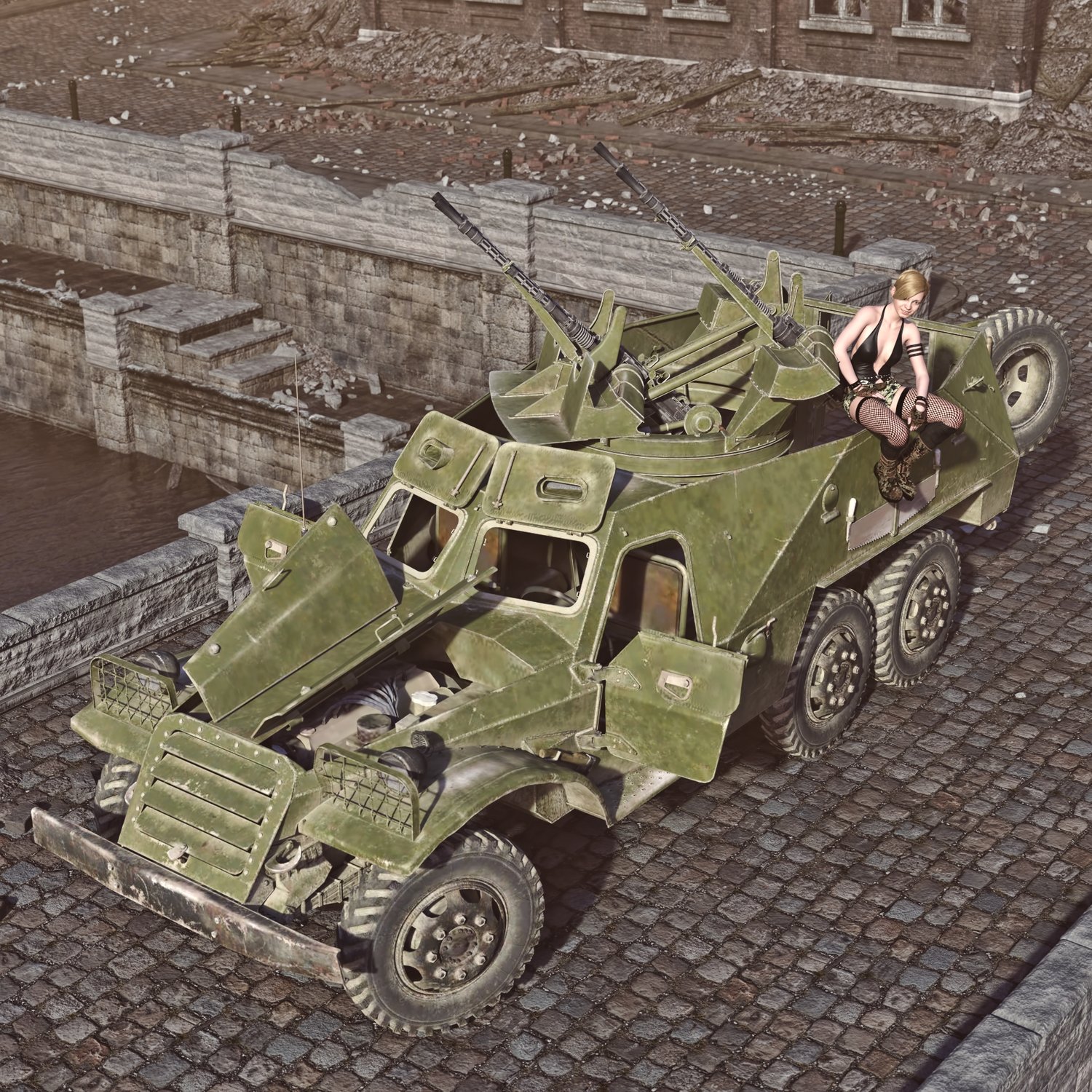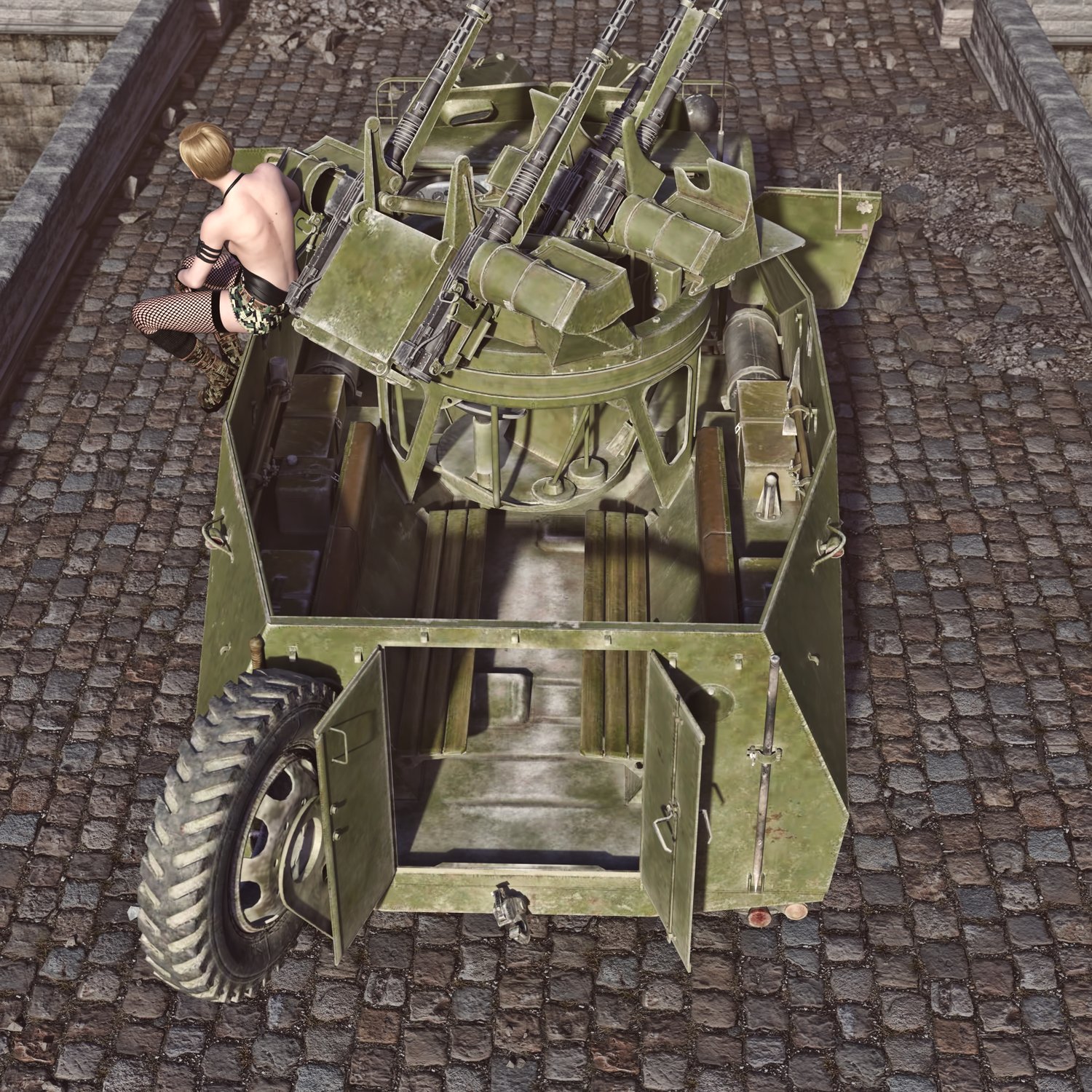 Good for war pictures, postapocalyptic pictures, Mad Max remakes and more. Since it's a converted model, the internal geometry and texture is not amazing, but might be enough for dispatching pics.