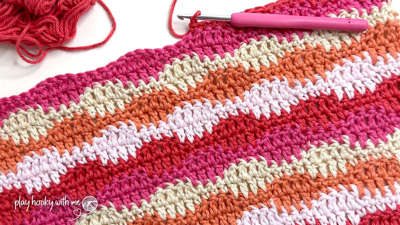 The Smooth Wave Stitch is worked in a simple 4-row repeat using single and double crochet stitches—no increases or decreases needed. This stitch creates a soft, flowing wave texture, perfect for blankets and relaxing projects.