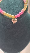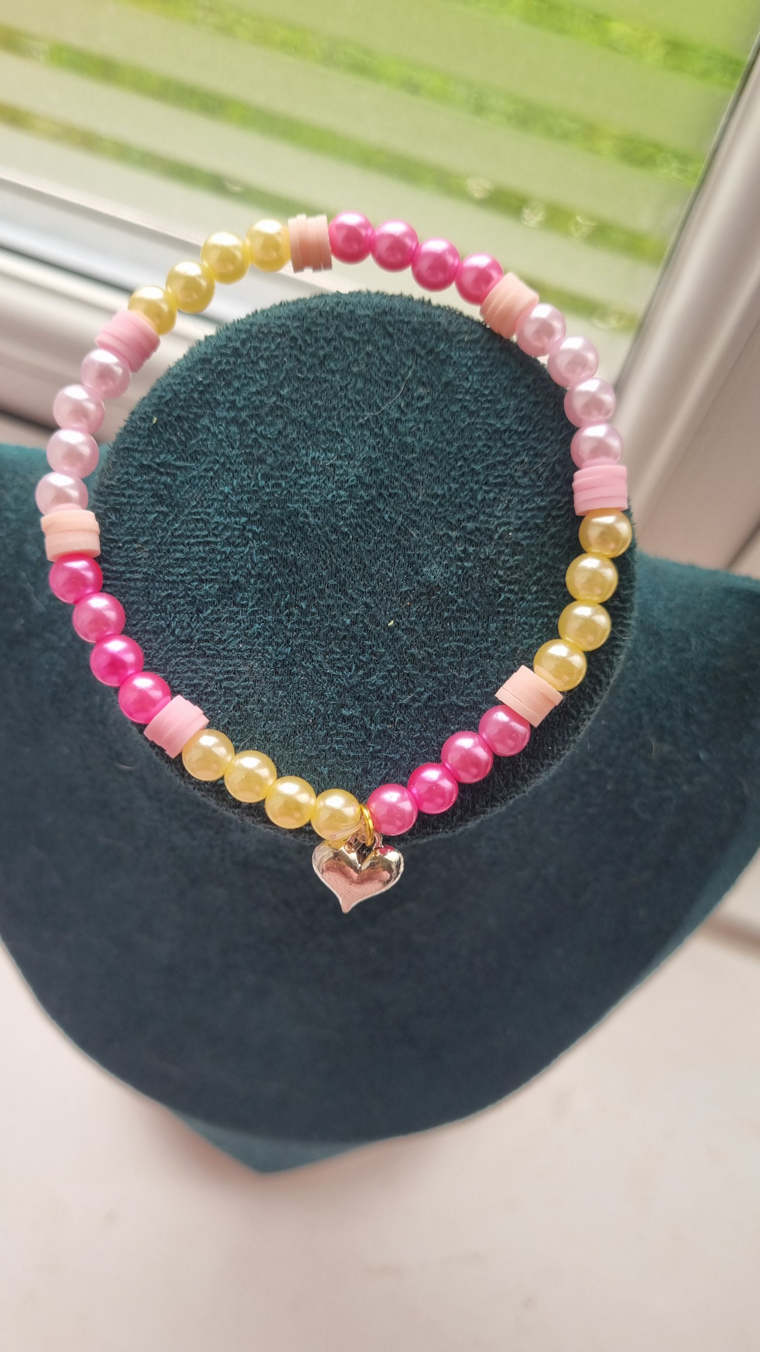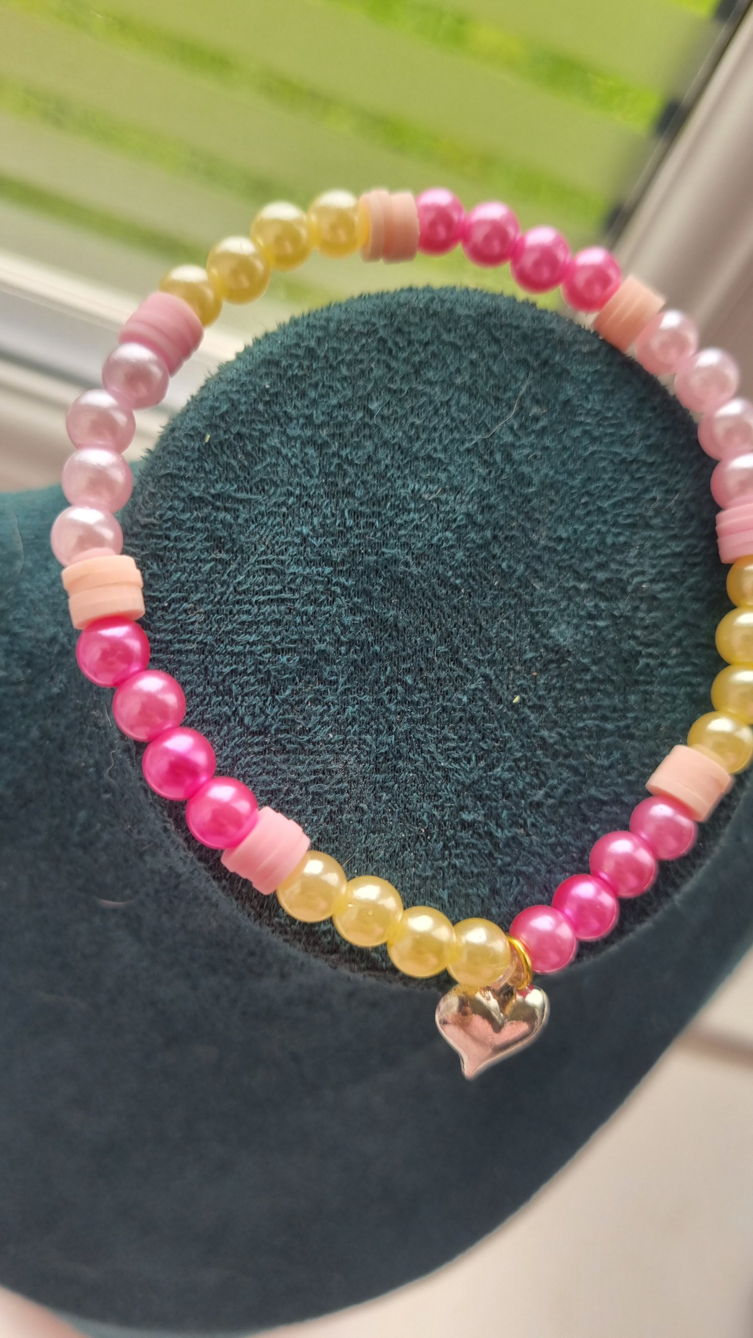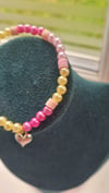 Rule your own pastel kingdom with the Pink Princess Bracelet – a sugar-sweet statement piece for those who mix tiaras with combat boots. This dreamy design features glossy pinks, sherbet yellows, and soft blush tones, brought together with playful spacer beads and finished with a dainty silver heart charm that says, “I’m adorable… but I bite.”