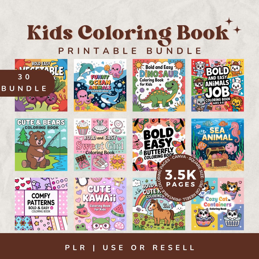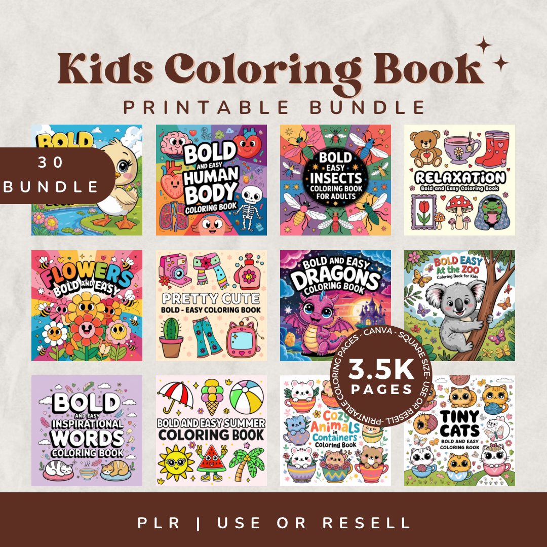 3.5K+ PAGES PRINTABLE PDF FILE with PNG IMGAES for Coloring Books for Kids | Downloadable | PLR