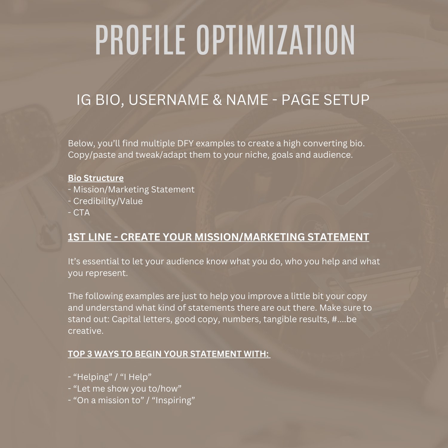 - Crafting the perfect bio: keywords, calls-to-action, and personal touches.