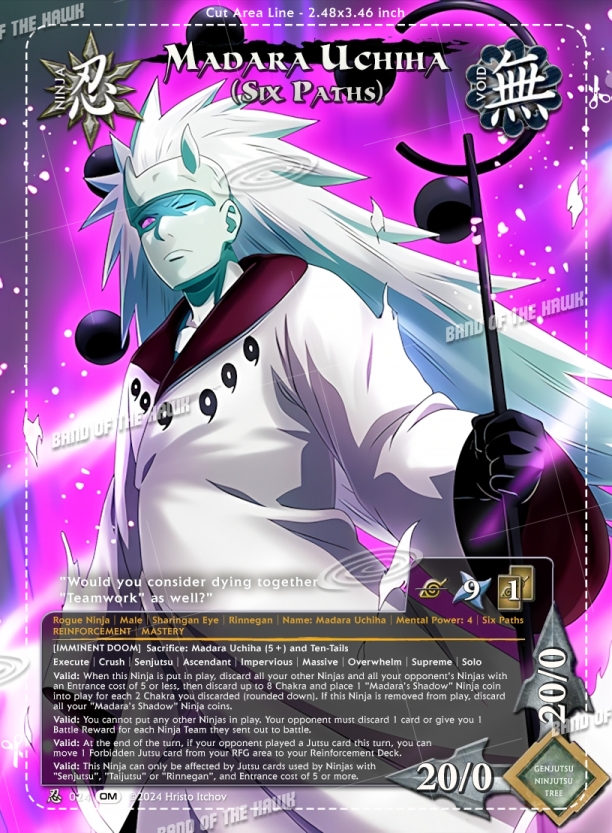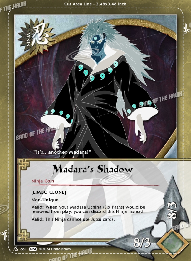 FREE BONUS CARD - you also get the co1 - Madara's Shadow Ninja Coin card which is used by the effect of n024 - Madara Uchiha (Six Paths).