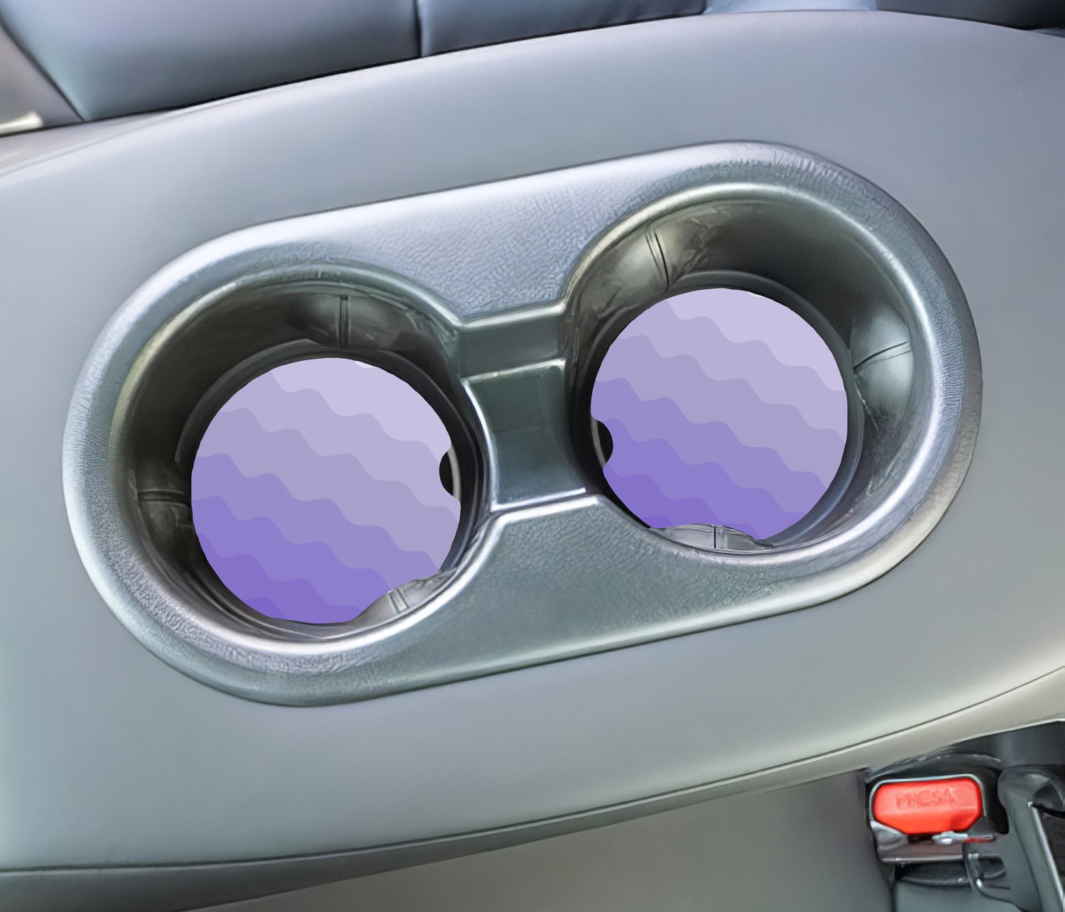 Car Coaster set of 2. These crafted Car Coasters are made of neoprene and are 2.75" round. This set comes beautifully packaged and ready for use to keep you car's cup holders clean or ready to give as a gift.