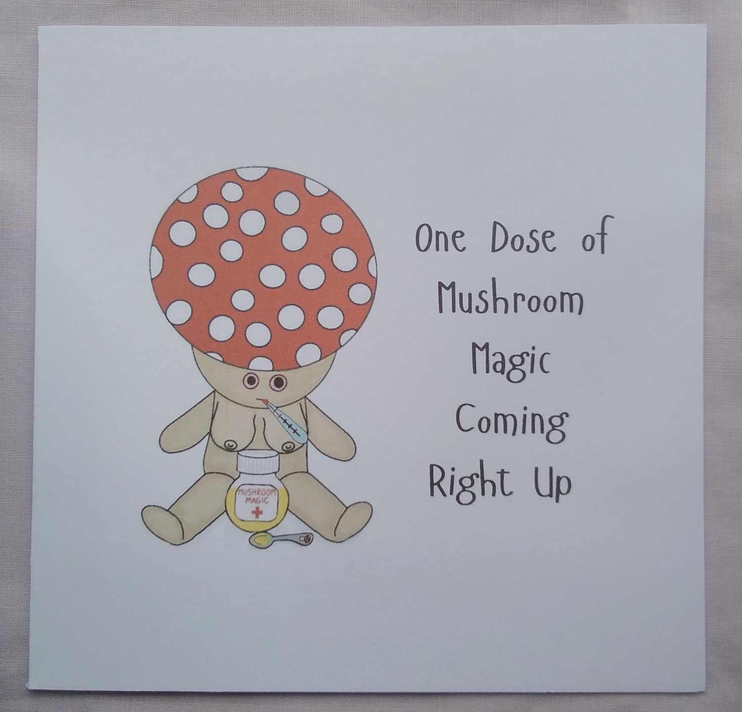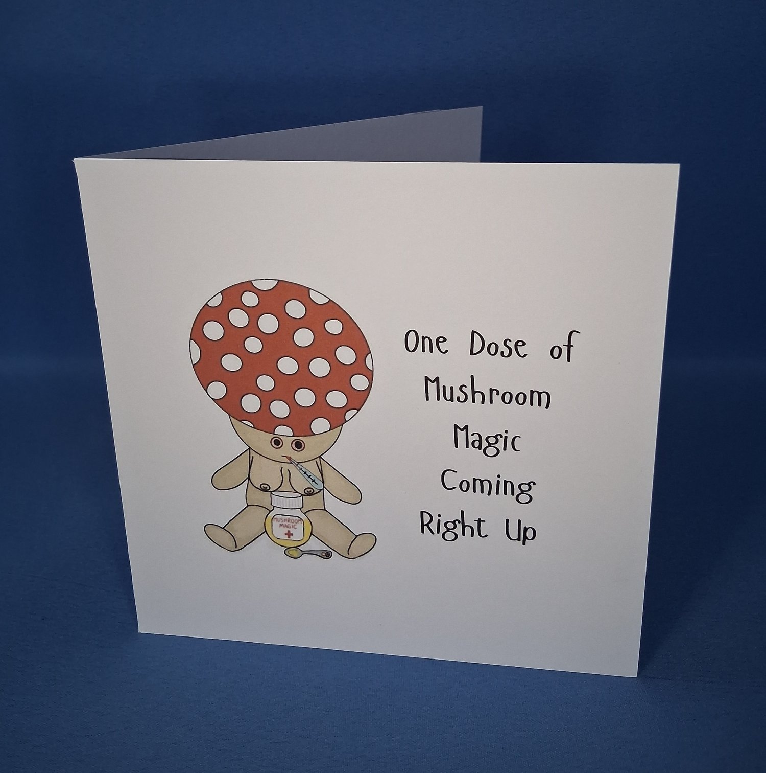 This funny square card says it all: One dose of mushroom magic coming right up! Perfect for cheering up a mate who needs a little pick-me-up, or as a hilarious keepsake to remind them laughter is the best medicine. Because recovery deserves a smile (and maybe some magic).