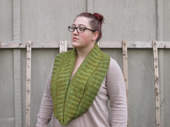 Kermit was designed for hand-dyed and hand-painted yarns, and the simplicity of the pattern allows the colors of the yarn to be the focal point, while the ribbed texture itself does not get lost in color variegations.