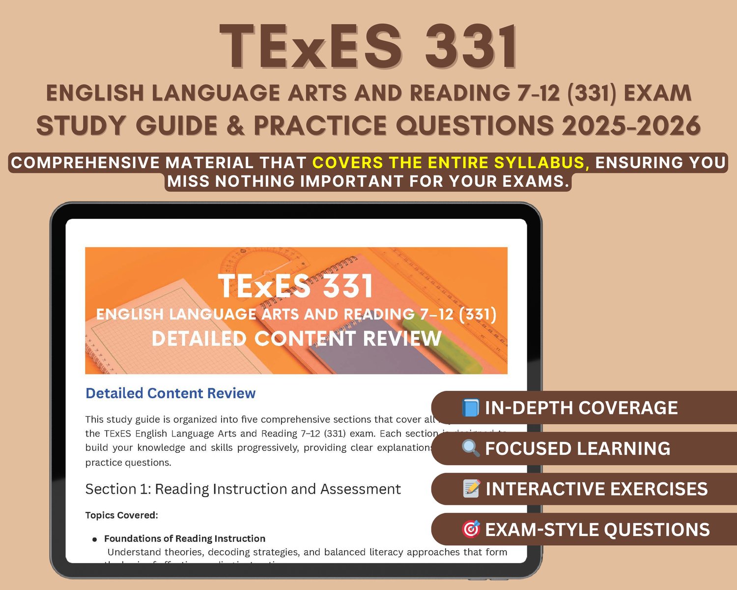 📘 TExES English Language Arts and Reading 7–12 (331) Study Guide 2025–2026 – Digital Download