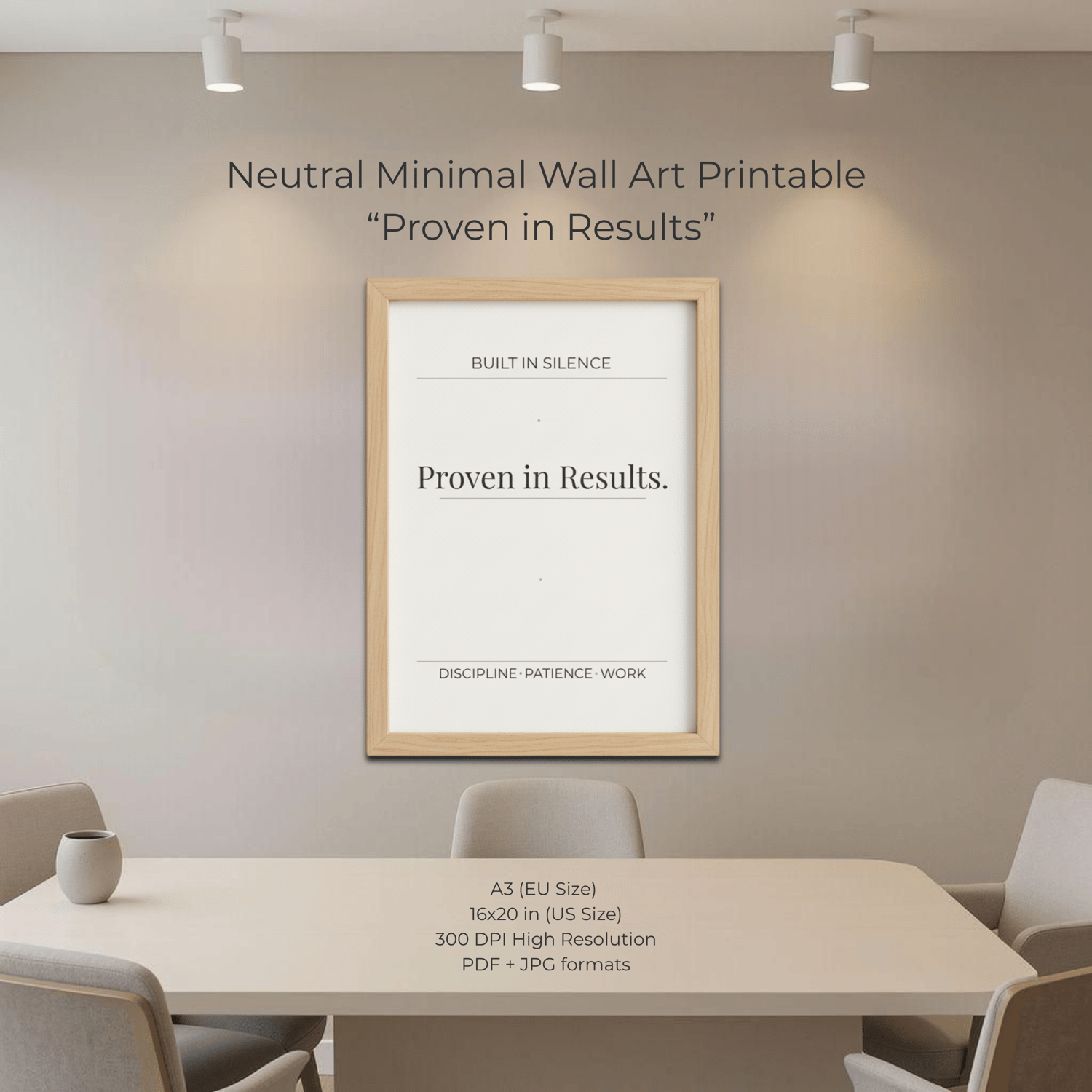 Neutral Minimal Wall Art Printable – “Proven in results” – Modern Office Decor (A3 + 16x20)