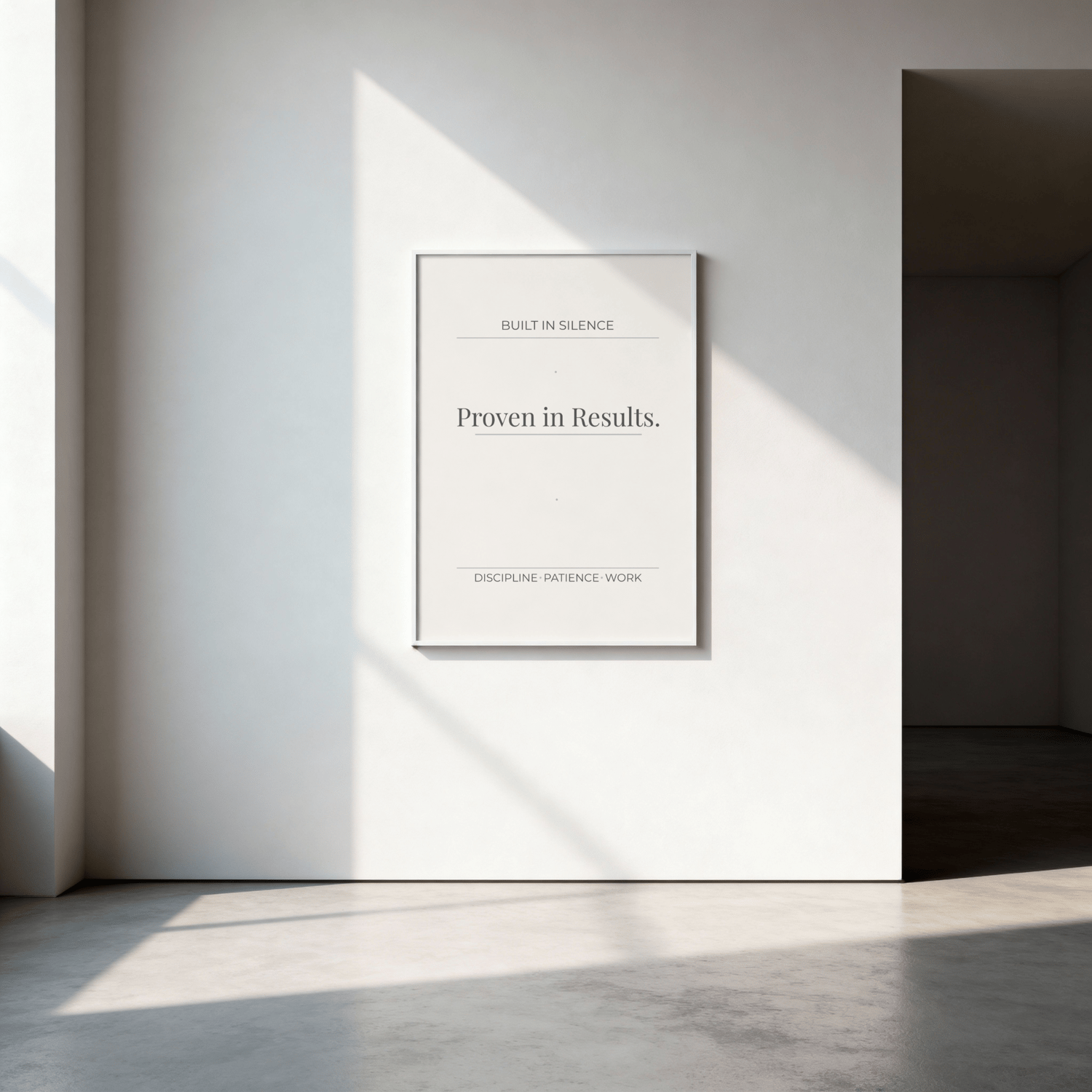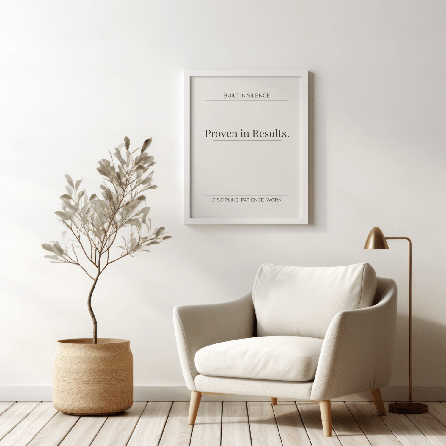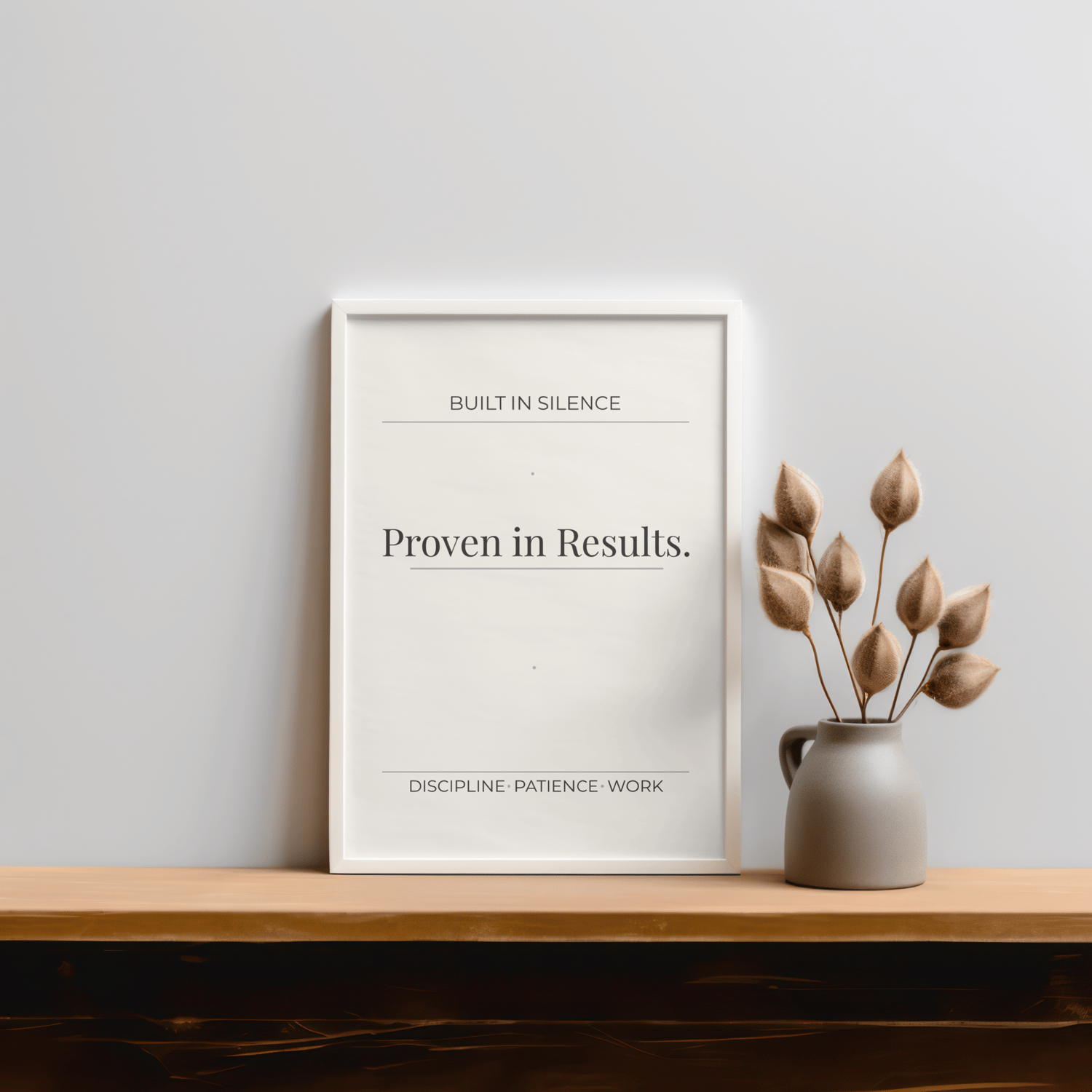 “Proven in results” is designed for modern offices, home workspaces, and intentional living interiors. Clean lines, neutral tones, and refined typography create a timeless statement piece.