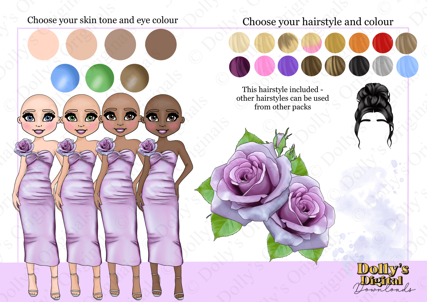 Instant digital download of our Lilac Rose Dolly Character Bundle PNG (34 PNG’s)