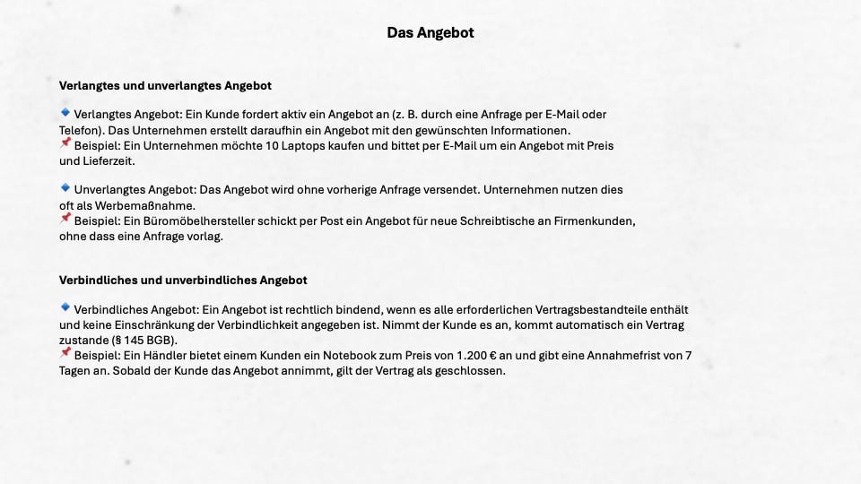 Hier findest du alle Folien zum Thema "Die Anfrage" und "Das Angebot"