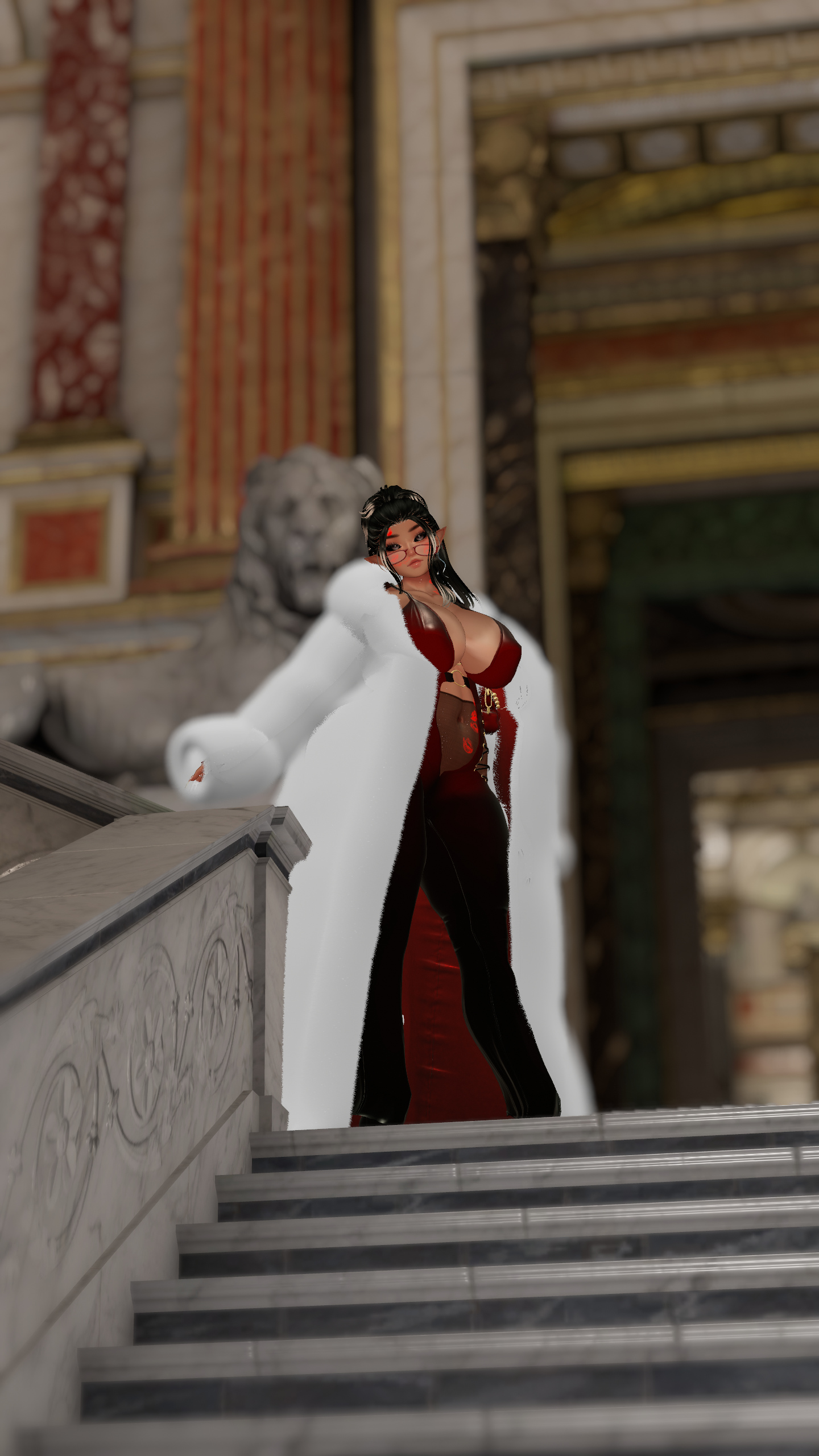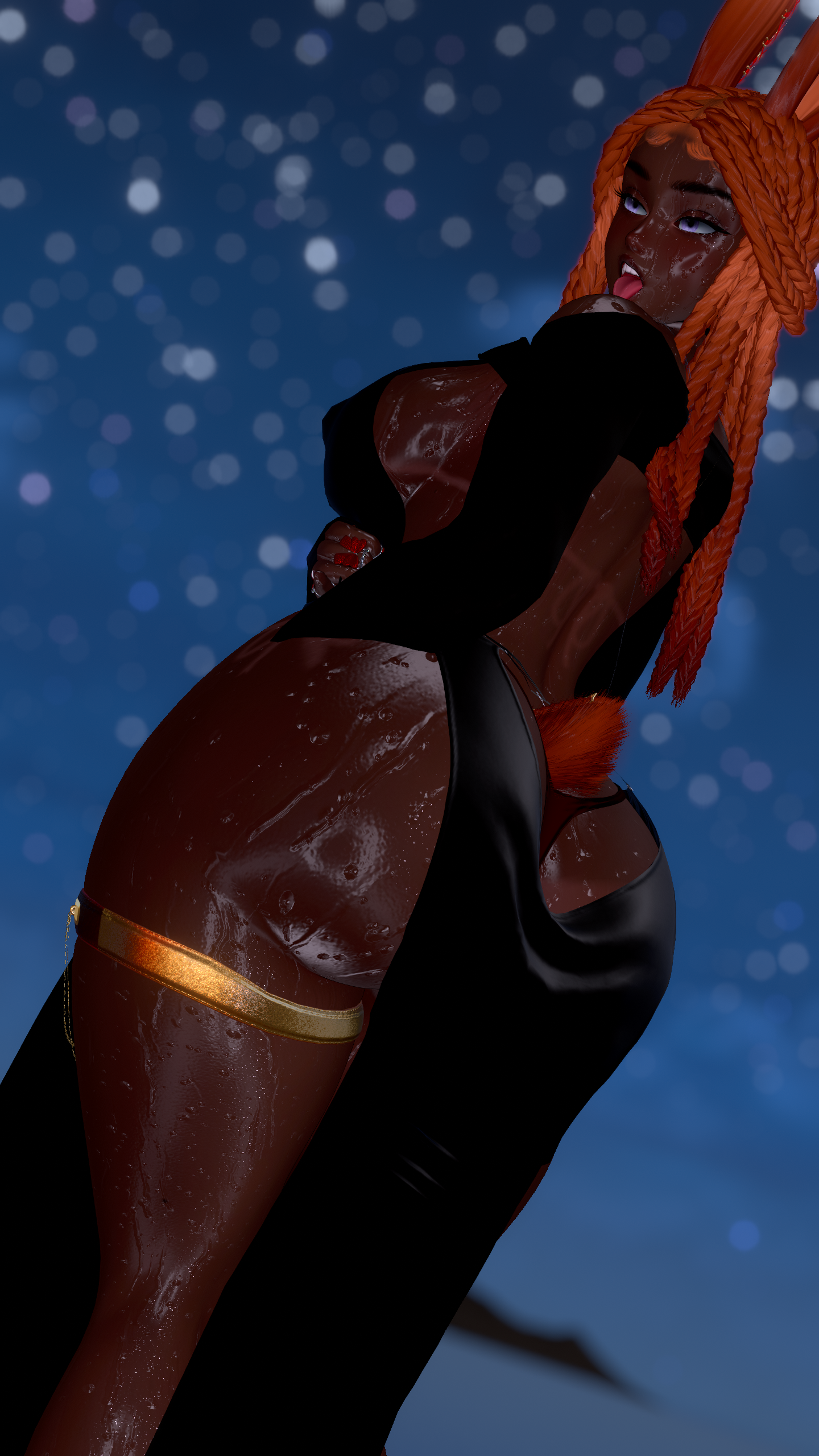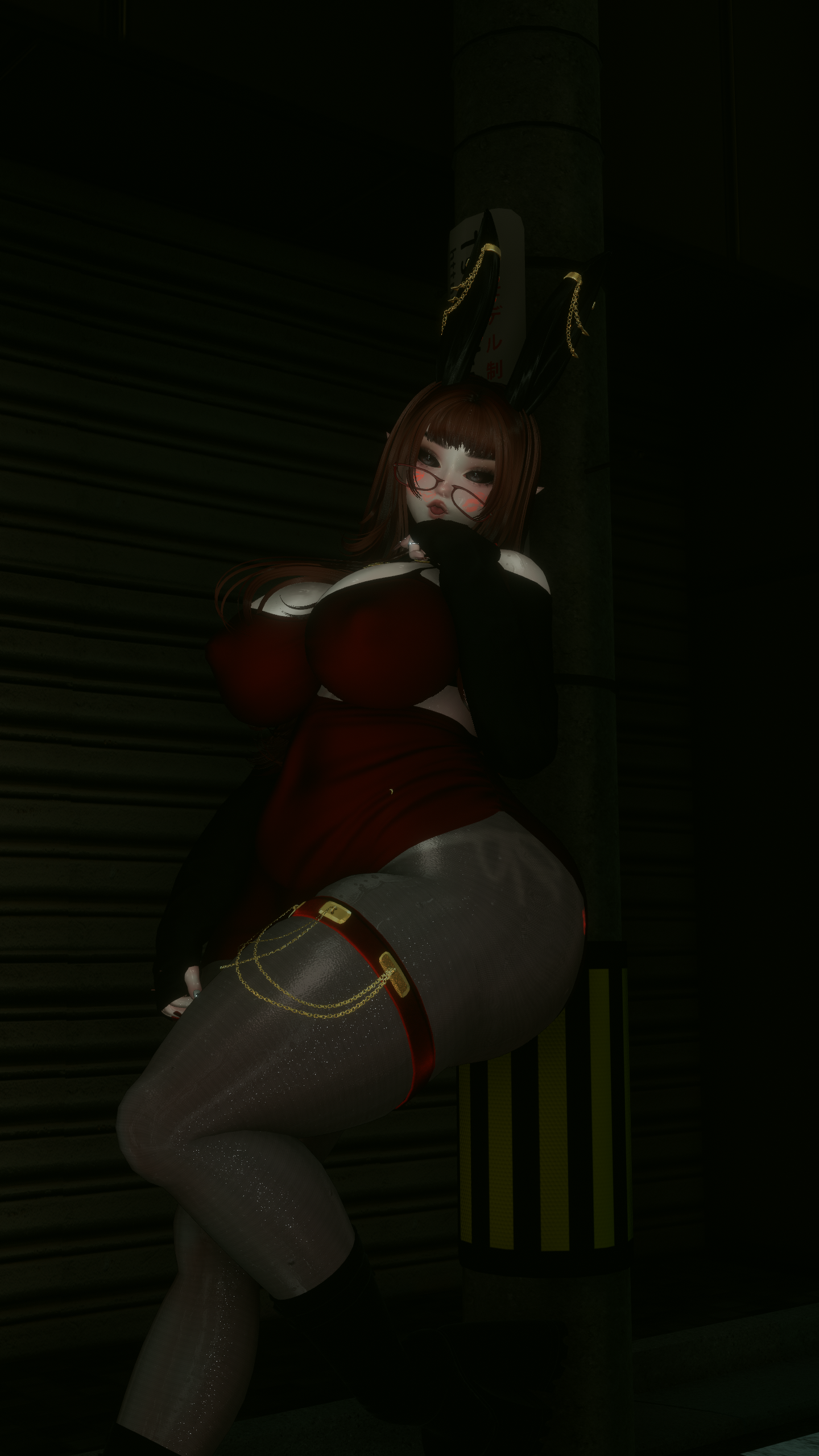 Face & Body Kiss Marks, Bzzz Toy & Bunny Ears, Catsuit, Heels w/Socks, Stockings, Coat, Elegant Dress, Fluffy Heels, Earrings, Back Necklace, Panty Liner: ThiccWitch