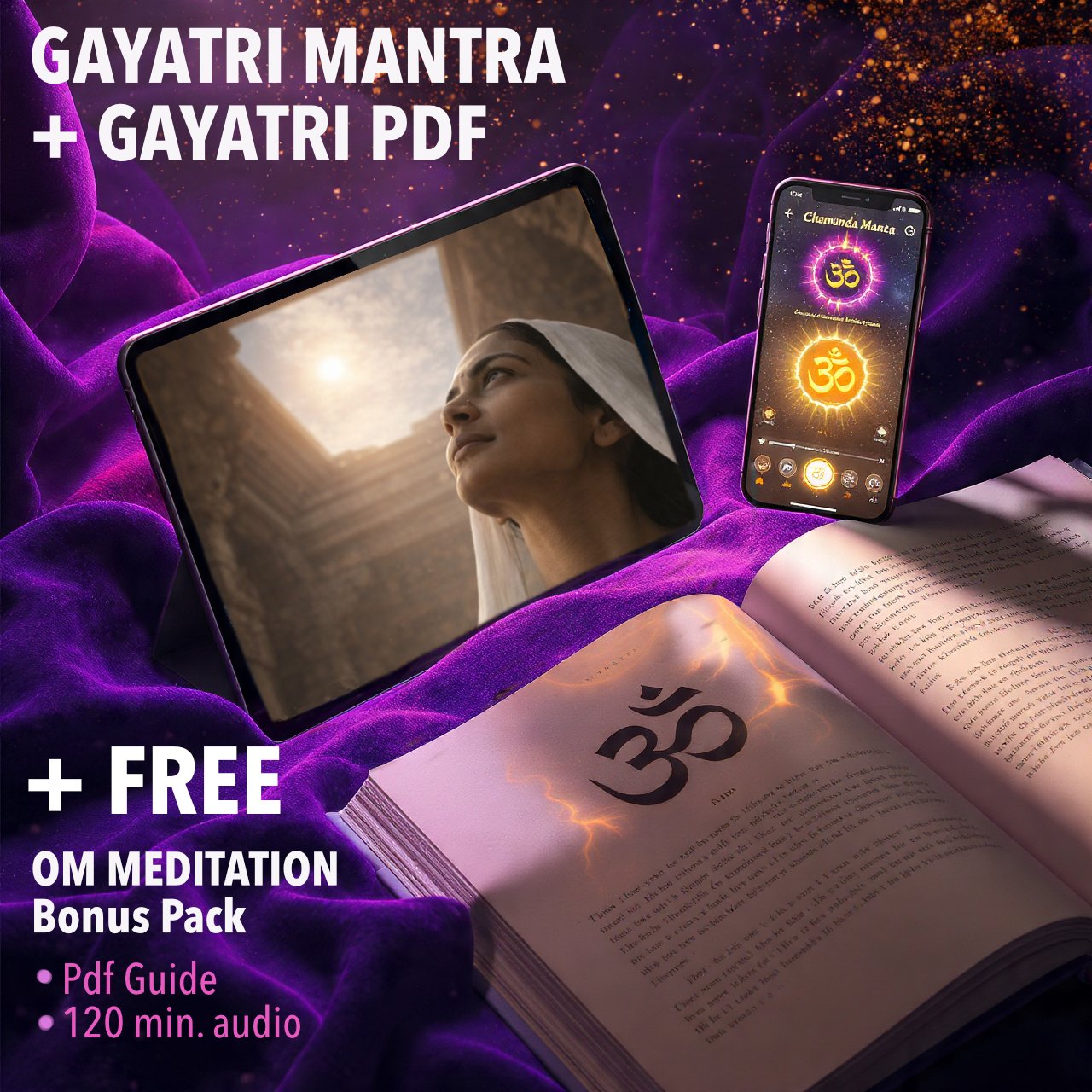 - The "Gayatri Mantra" Audio: A pristine, rhythmic, and high-vibration recording designed to scrub the mind clean. Listen to this at sunrise or during study/work to banish brain fog, anxiety, and lethargy, replacing them with sharp focus and peace.