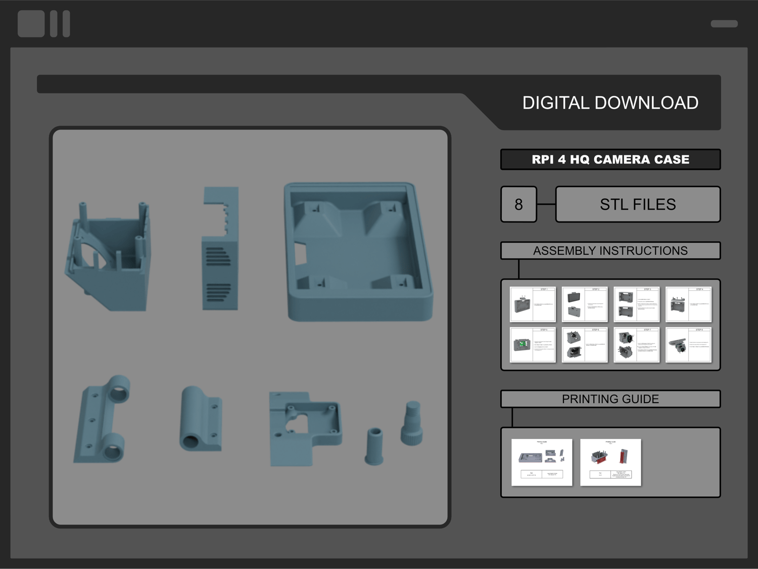 A 3d printable case for the raspberry pi 4, the raspberry pi HQ camera sensor and the pi foundation 7in touchscreen. The 3d printed hinge allows the touchscreen to move 180° with a locking screw to hold it at your preferred angle. To keep everything cool the case has 2 sets of ventilation holes as well as a mounting location for a 40mm fan