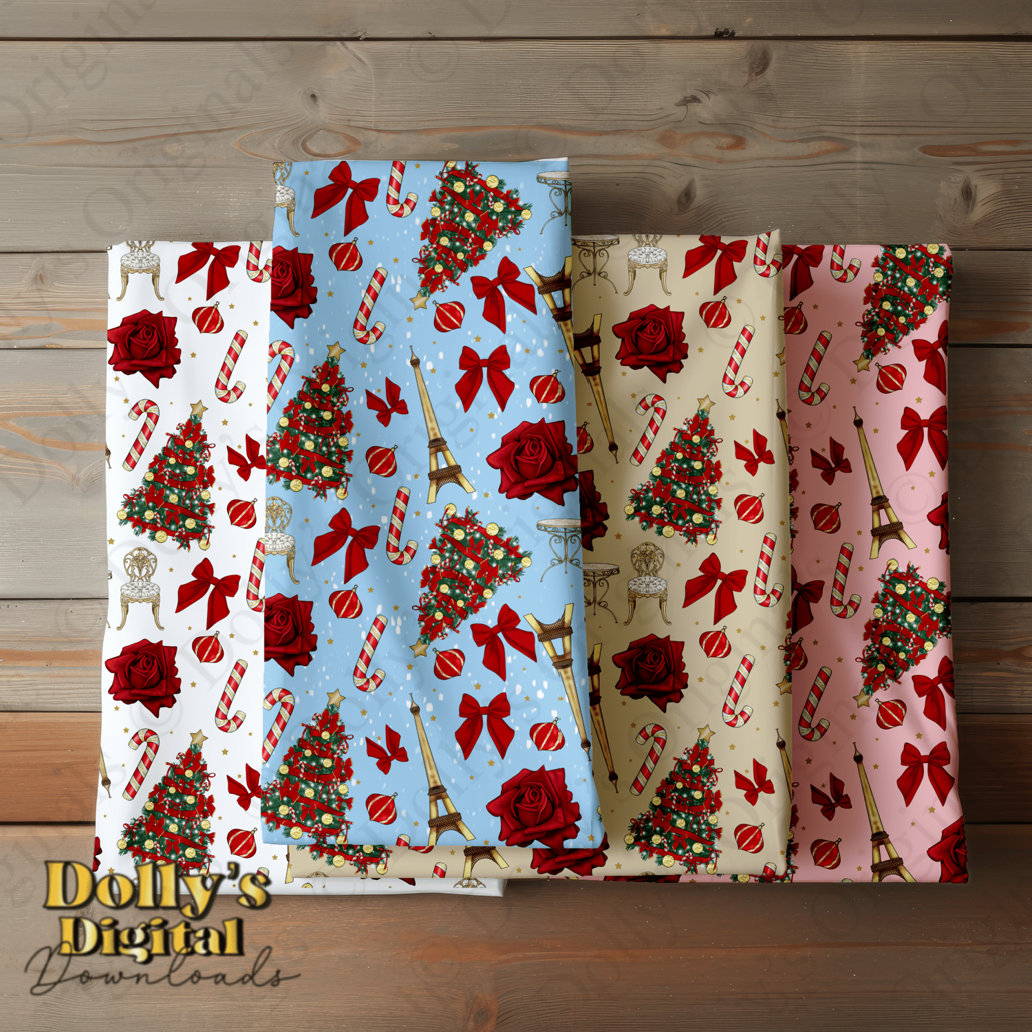 Instant digital download of our Christmas In Paris Seamless Patterns (4 PNG’s)