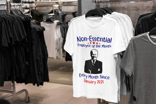 This Biden SVG design highlights an accomplishment of President Joe Biden - nonessential employee of the month!! This hilarious design is fun and great for crafting and personalizing clothes like t-shirts, sweatshirts, jackets, hats, tote bags, coolers, gifts and more!