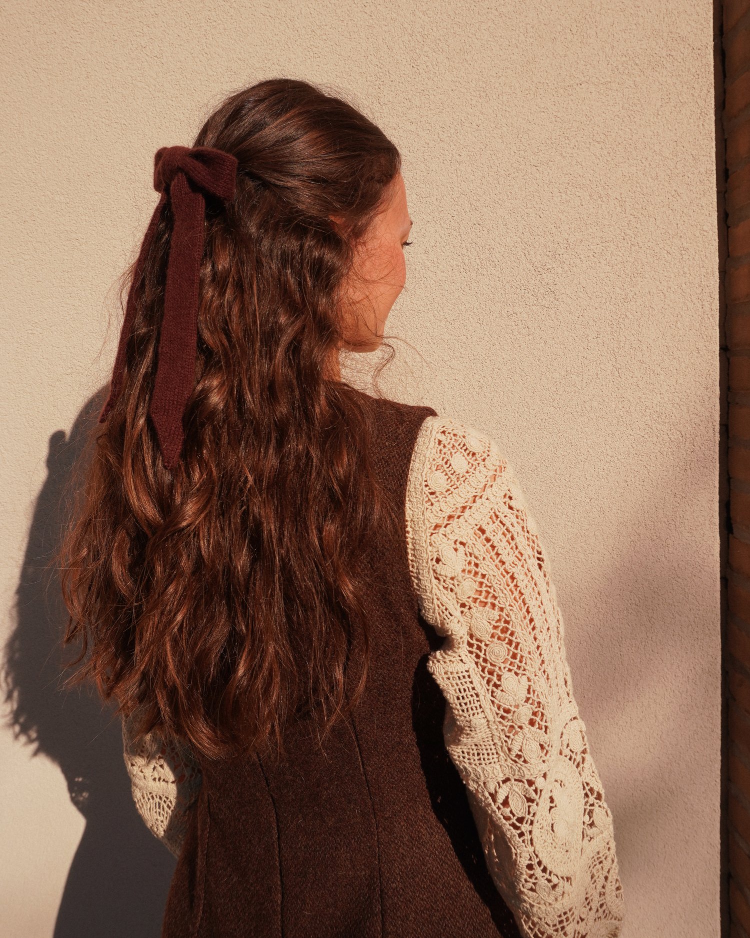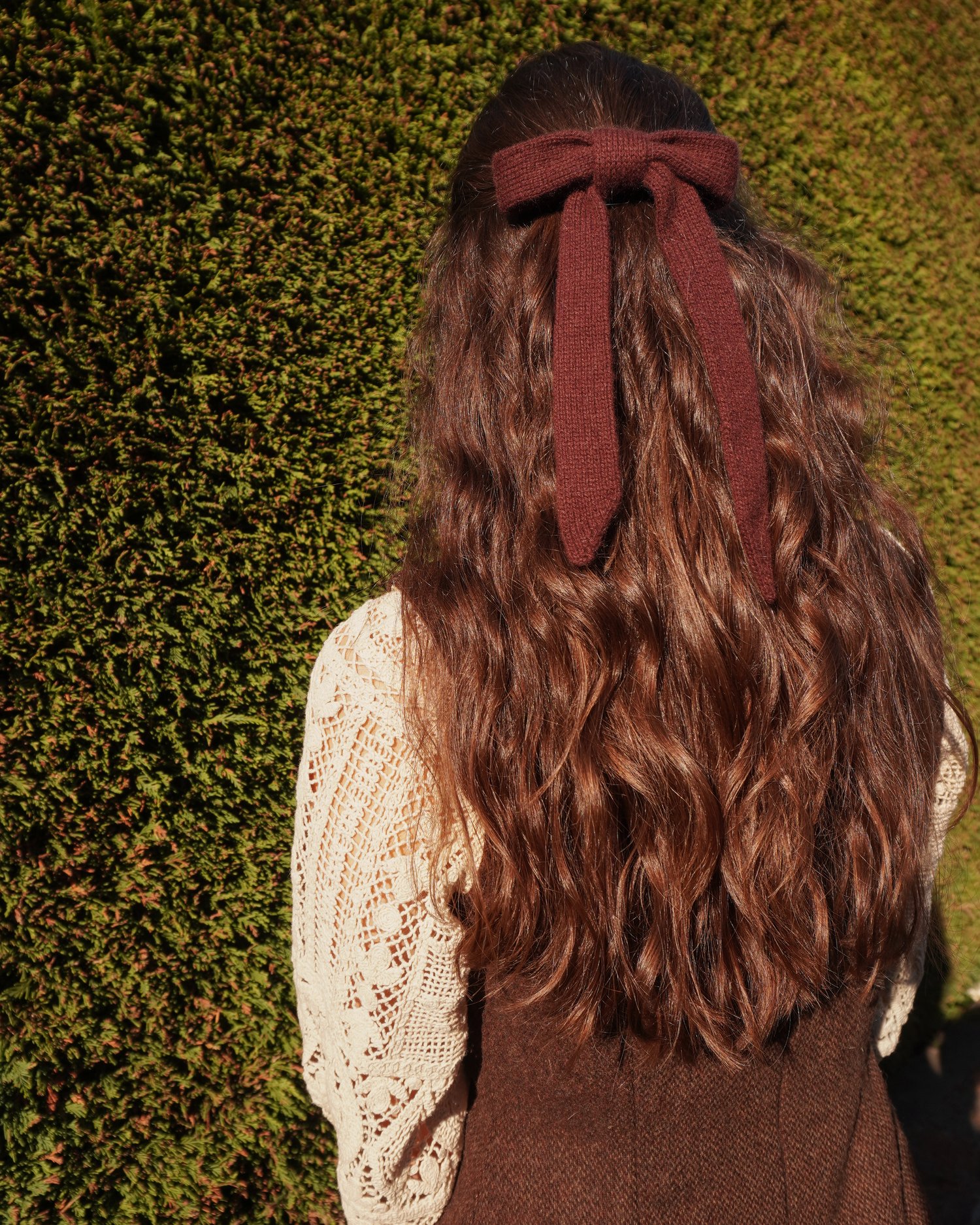 The Amarena Bow is a festive accessory that can be styled in your hair or used to adorn your home.