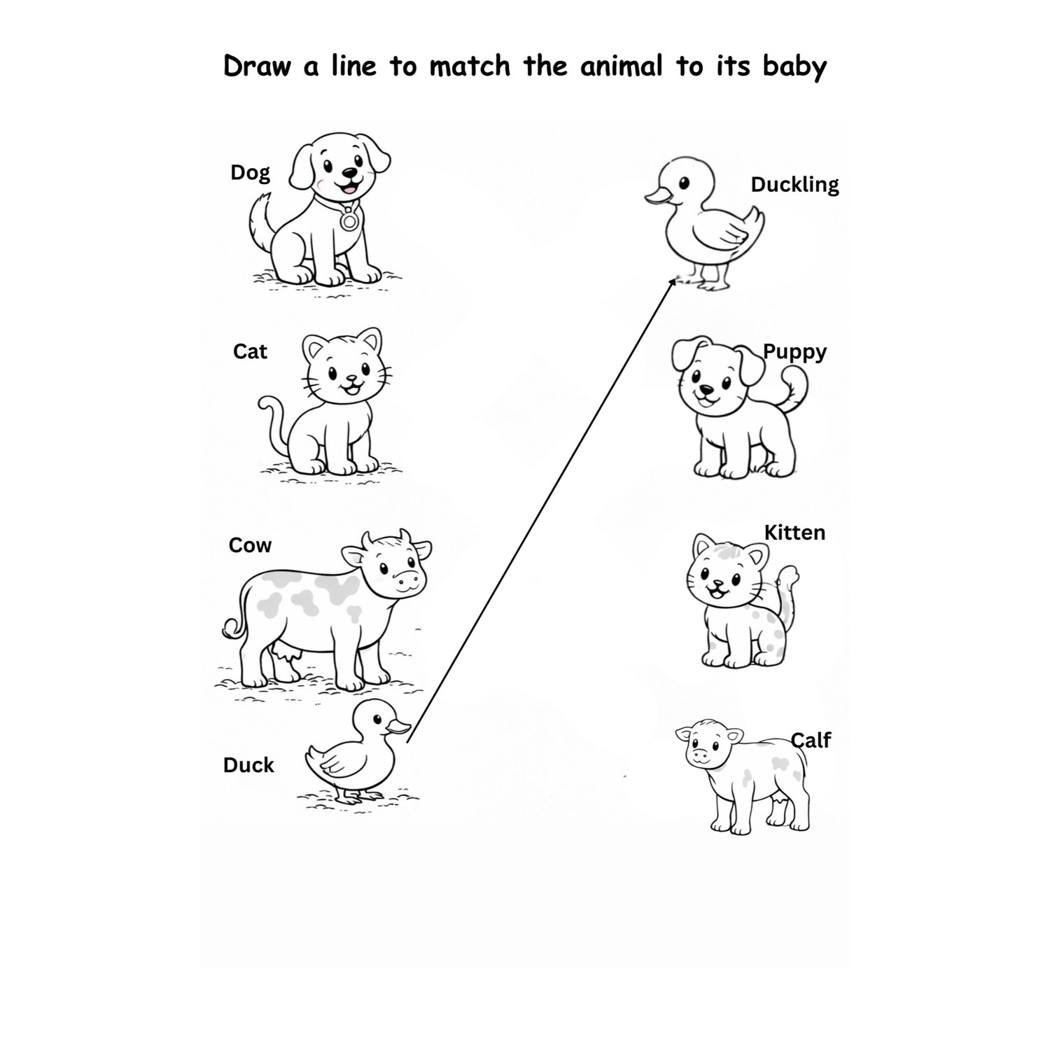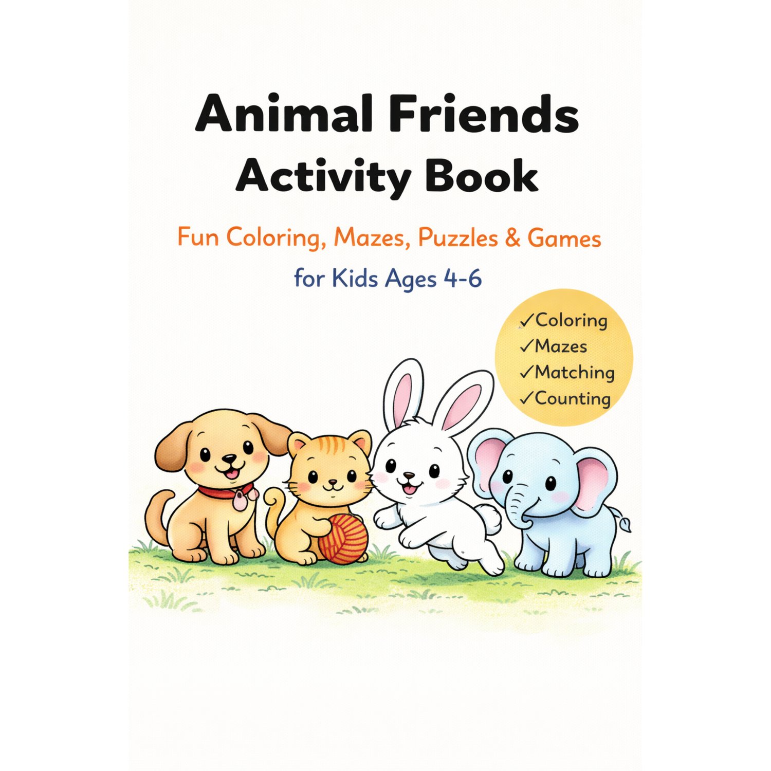 Animal Friends Activity Book for Kids Ages 4–6 | Printable Coloring, Mazes, Matching & Counting Worksheets (PDF)