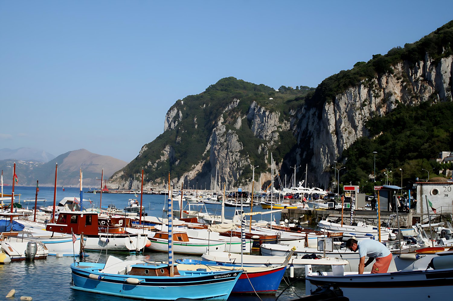 Capri harbor in Italy, with all the small boats. It is printed on Hahnemühle gallery fine art paper, size A2 (420mm x 594mm).