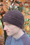 A hat designed for the brothers in your life; be they true siblings or those who have earned the title by being fellow travellers through life. It is designed for fingering yarn held double on a simple knit/purl pattern that a man will wear but not just ribbing for once. The pattern is reduced neatly on the crown for cool effect and to keep it interesting to knit.