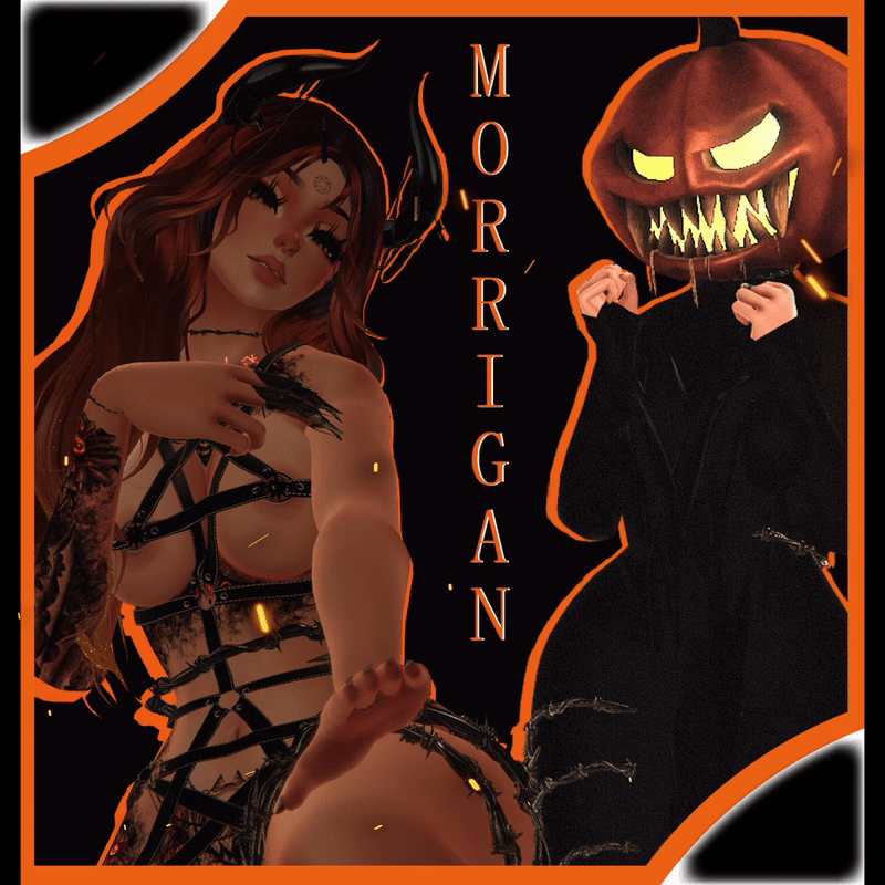 - Material Swaps -- Dress Colour Black/White, Bottom Opacity, Pumpkin Head Carved Decal, Pumpkin Head Bloody Decal.