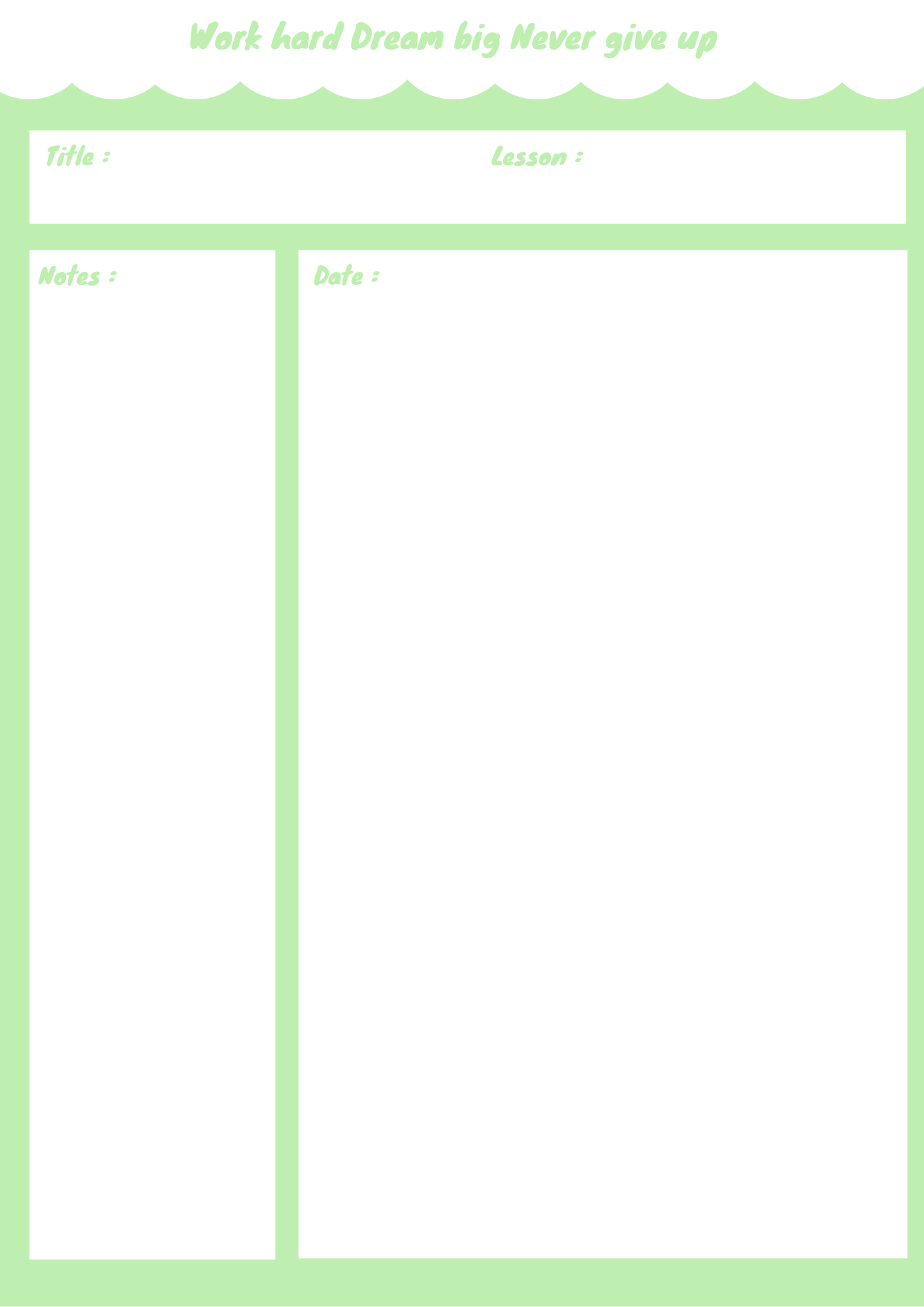 Printable PDF A4 Kiwi candy Notepad to feel fresh while writing and reading your lessons.
