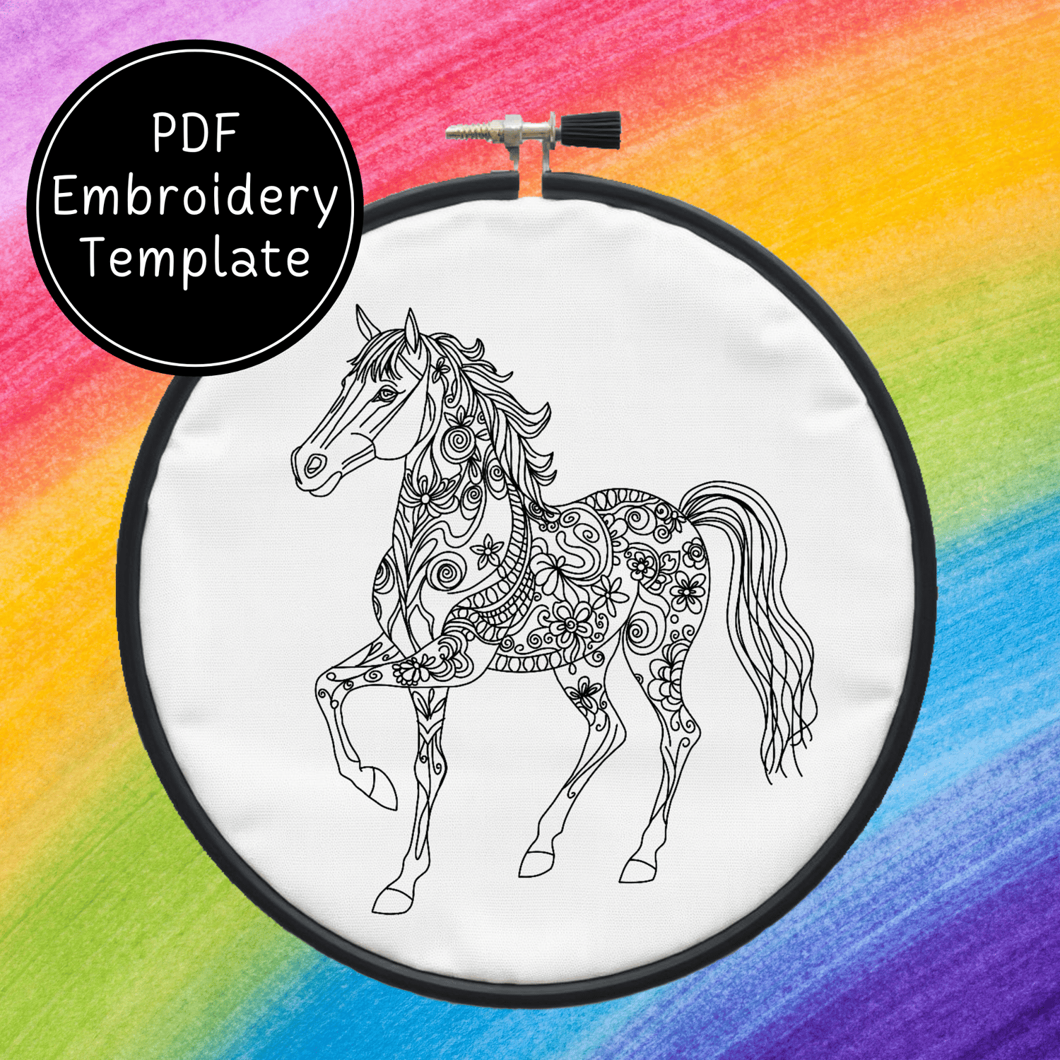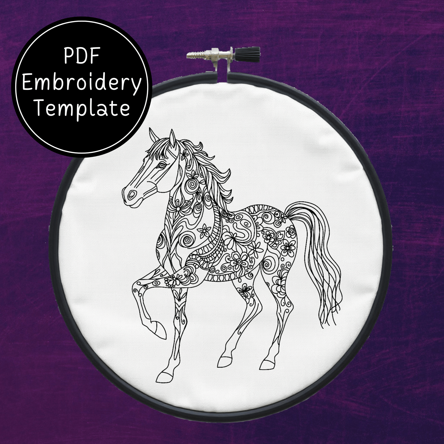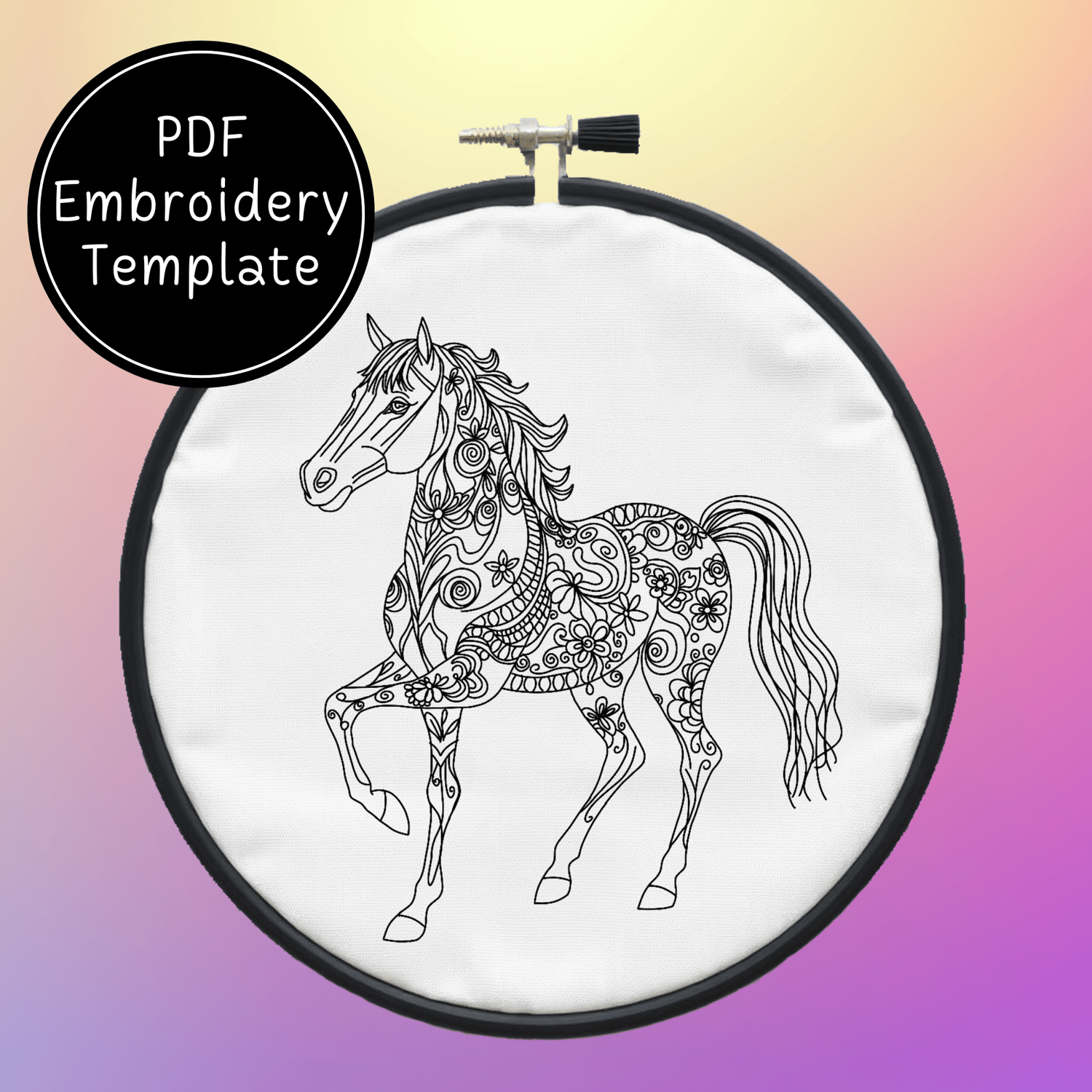 Paisley Horse Hand Embroidery Pattern DIY Embroidery