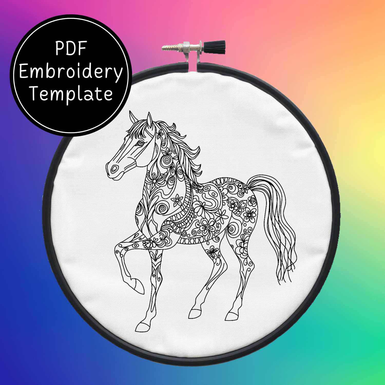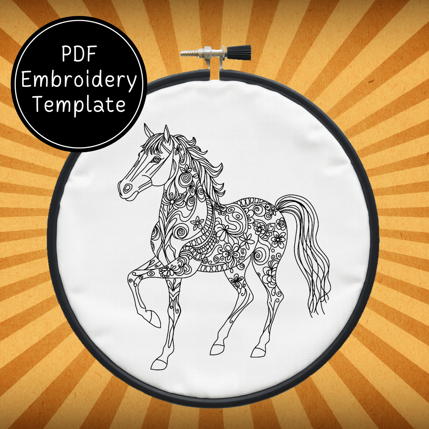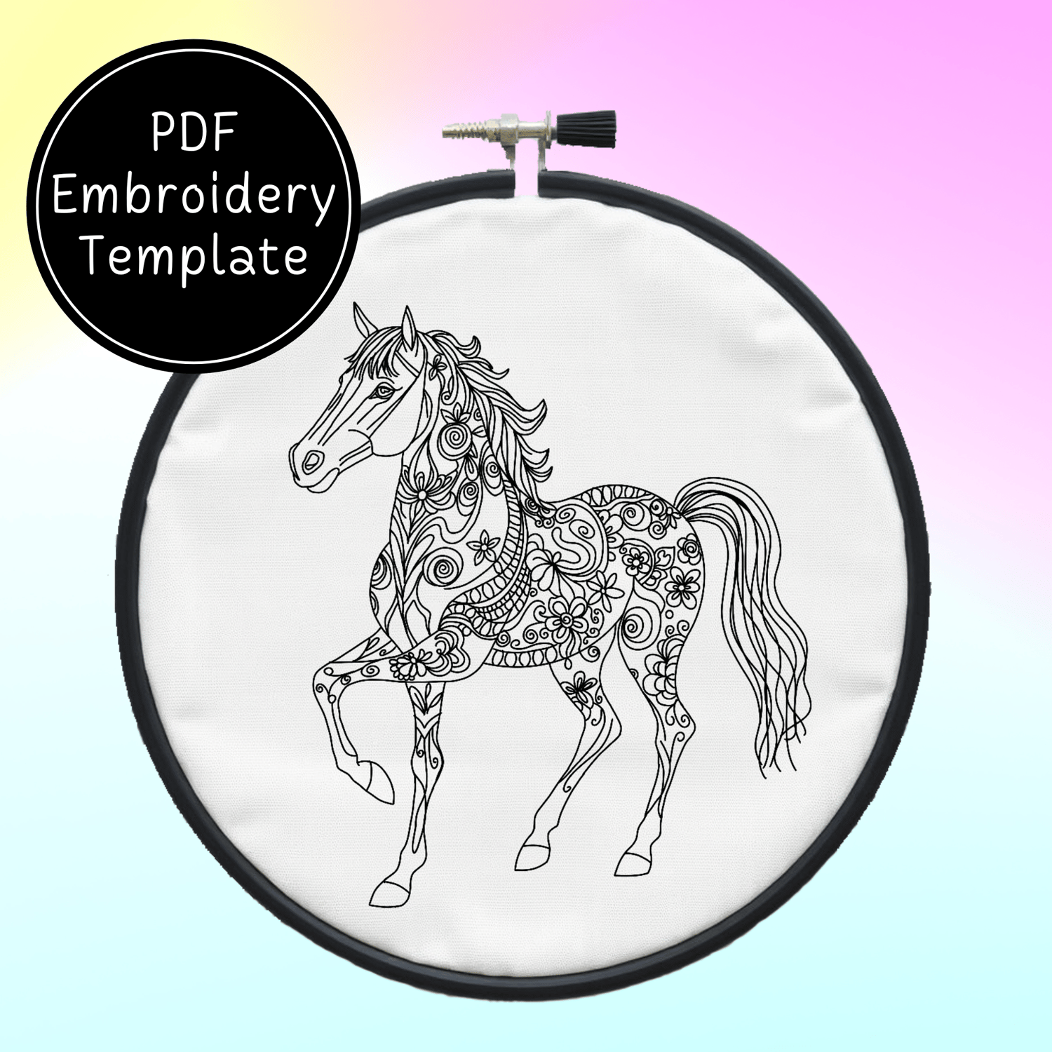 Paisley Horse Hand Embroidery Pattern DIY Embroidery