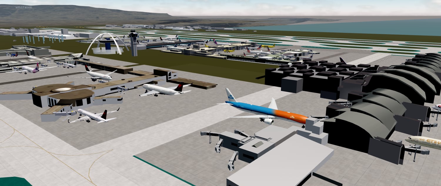 Los Angeles Airport is a destination airport, ideal for your airline! With accurate scenery, layout and details, the airport is a great destination for your airline. Includes working jetways and an arrival hall. Including the iconic Hollywood sign!