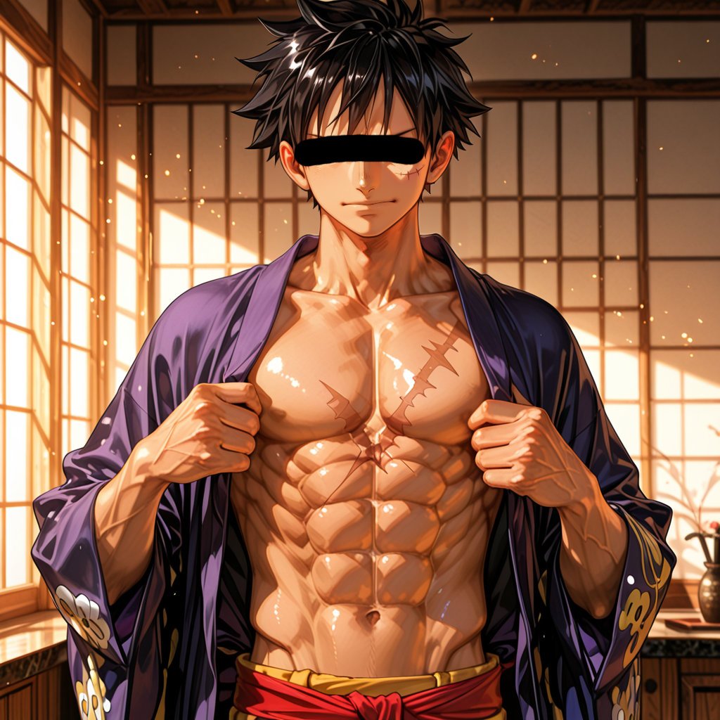 日本の正月をテーマに、着物を着用している男性を、キャラクターごとにお任せ作成しました。男らしいキャラクターの魅力を思い切って表現しました。