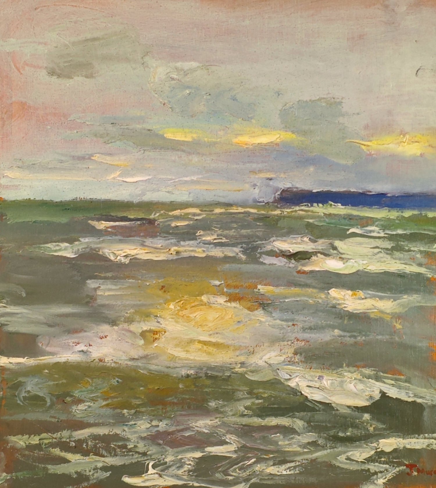 Painted directly from life overlooking Torre Abbey Sands, with rough seas and Berry Head visible in the distance. The work captures the shifting light across the water and the atmosphere of the bay under changing weather.