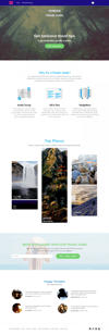 This vibrant and engaging website template is designed for promoting exclusive travel guides and tips. The main banner features a captivating image of a scenic destination, accompanied by an enticing headline inviting visitors to get exclusive travel tips through destination-specific e-guides.