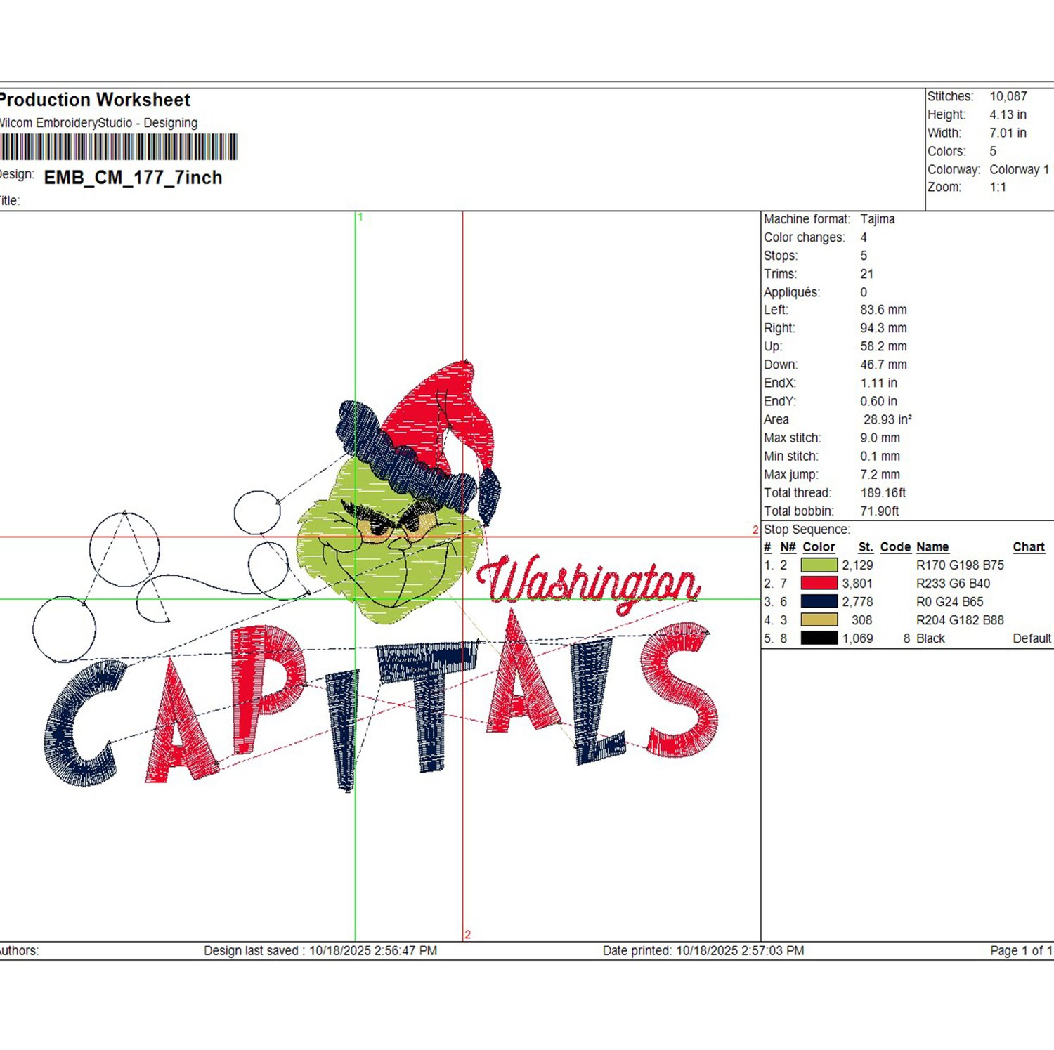 #ChristmasGrinch #WashingtonCapitals #NHLEmbroidery #GrinchEmbroidery #CapitalsLogo #HockeyEmbroidery #MerryChristmasDesign #MachineEmbroidery #DigitalDownload #EmbroideryFiles